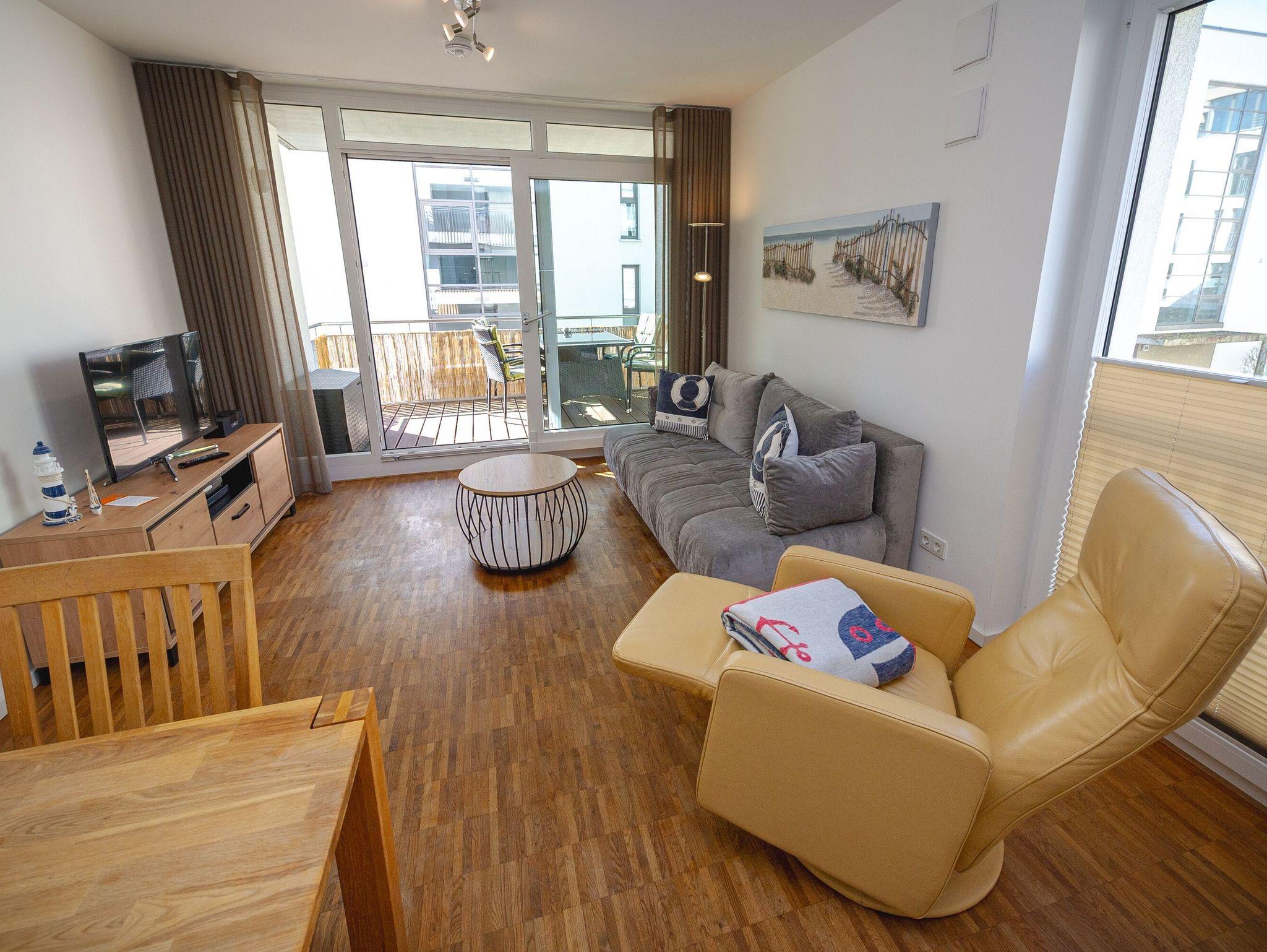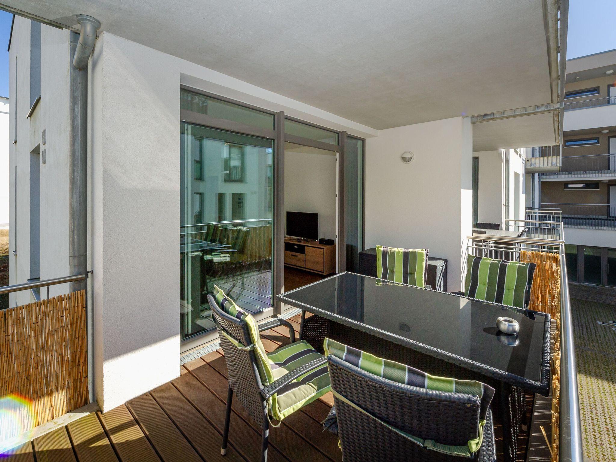 Dieses exklusive 2-Raum-Appartement mit Balkon ist 59 m² groß und bietet Platz für bis zu vier Personen. Die Wohnung befindet sich im 1. Obergeschoss auf der Südwestseite der modernen Appartementanlage. Den Ostseestrand mit der wunderschönen Binzer Strandpromenade erreichen Sie in nur wenigen Schritten.
