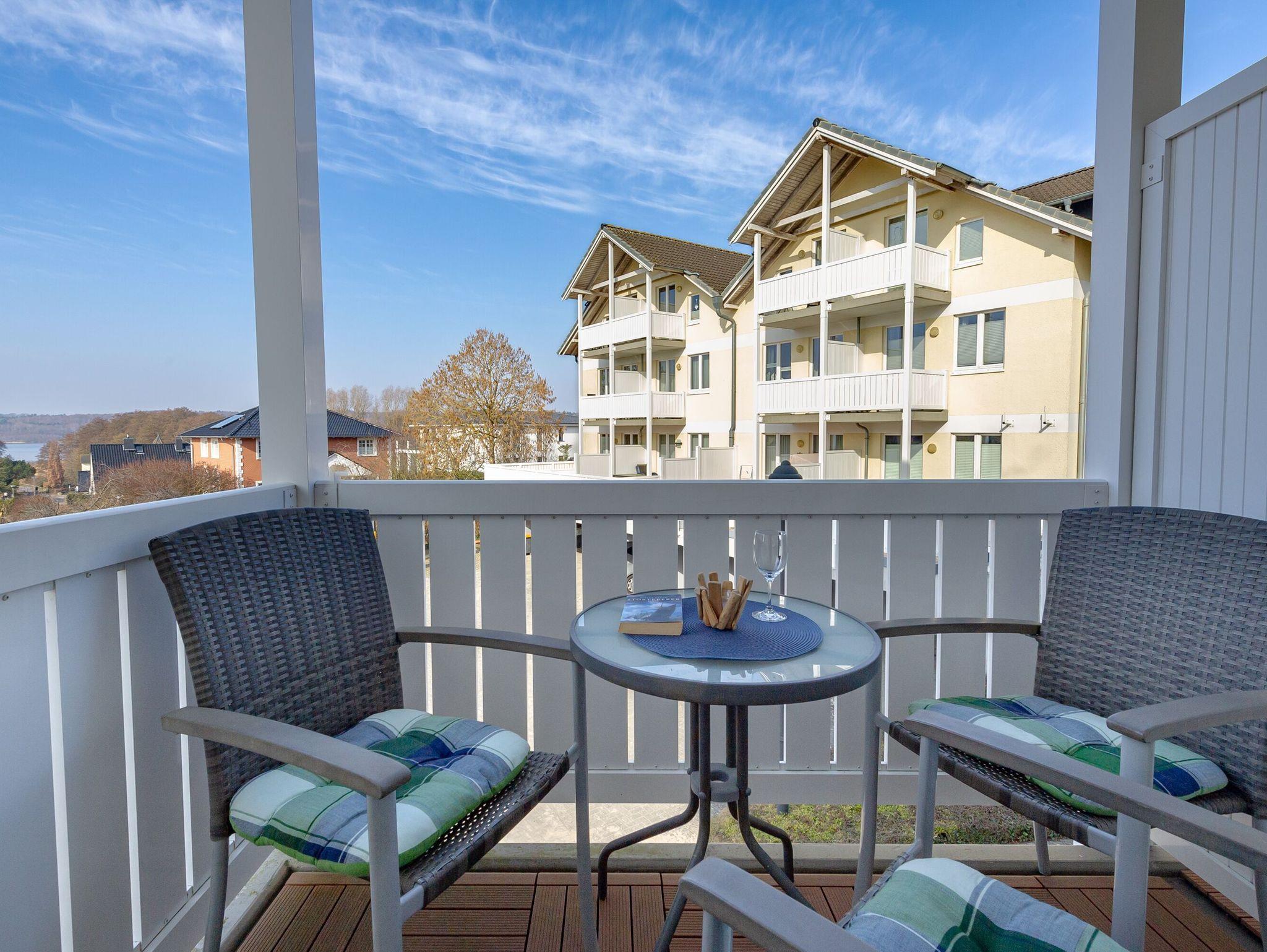 Dieses schöne 2-Raum-Appartement im ersten Obergeschoss ist ca. 43 m² groß und hat einen überdachten Balkon zur sonnigen Südseite mit teilweise seitlichem Blick zum Schmachter See.