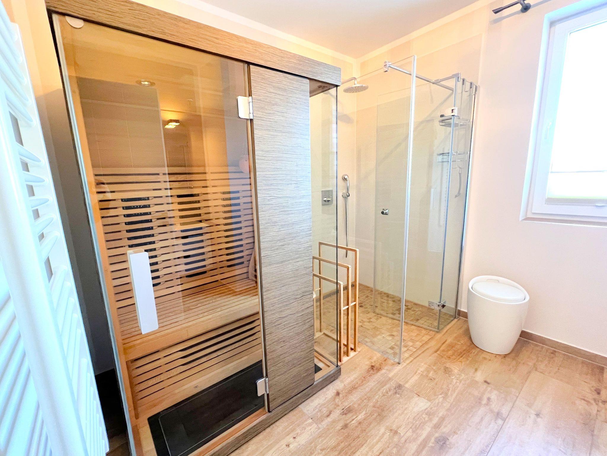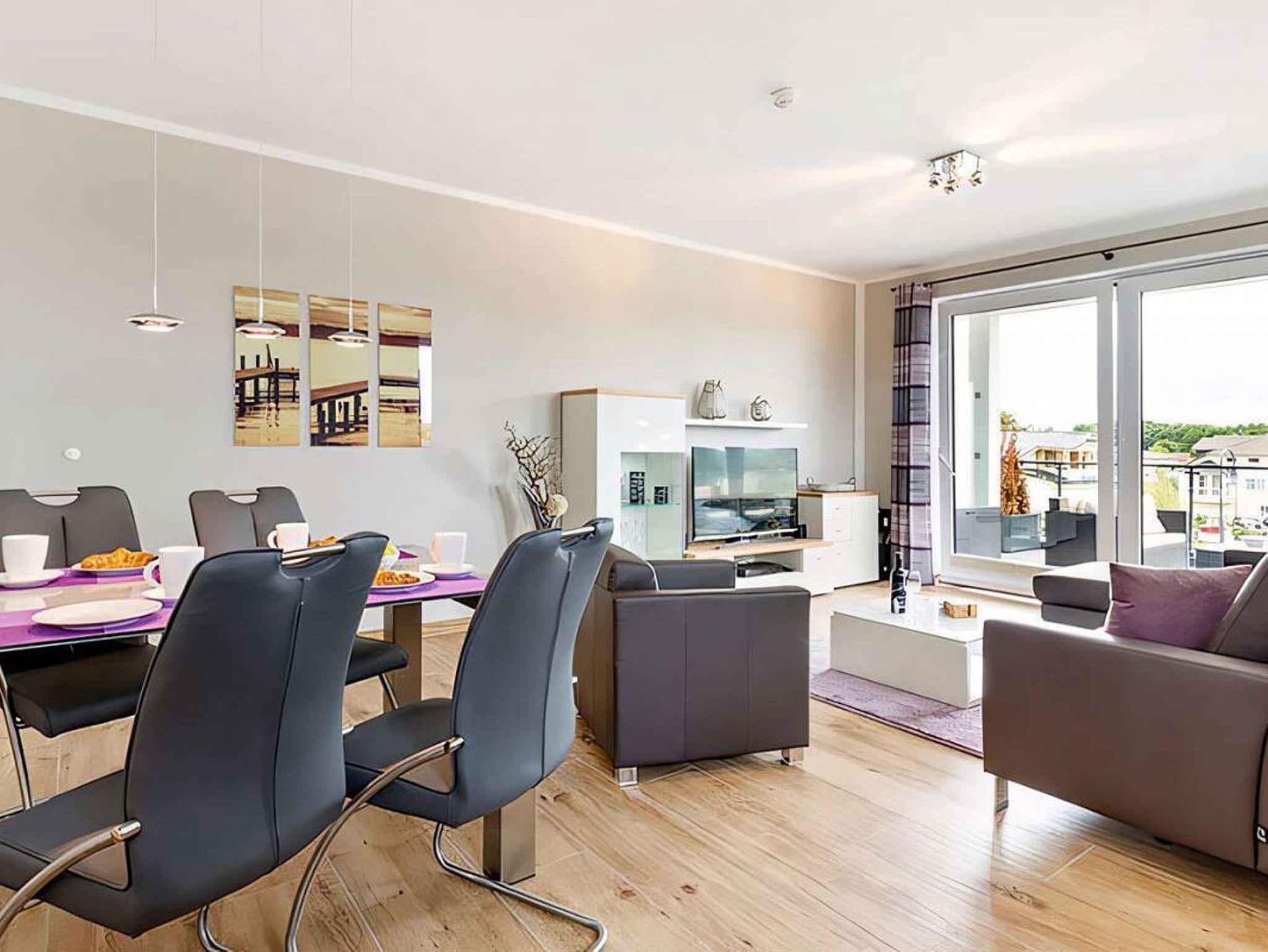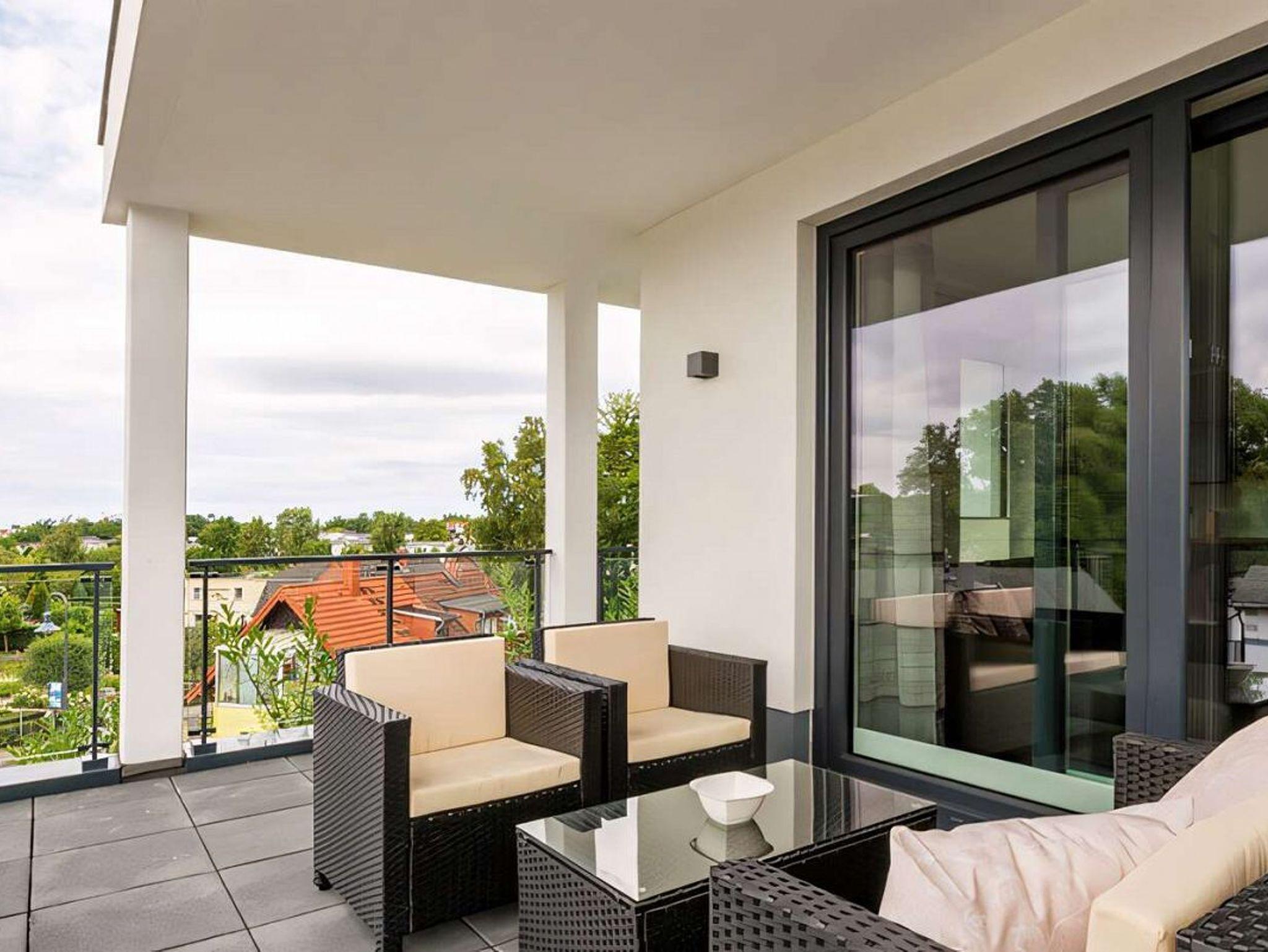 Erstklassige 5-Sterne-Ferienwohnung an der Ostsee. Verbringen Sie mit bis zu 4 Personen einen wundervollen Ostseeurlaub in der 77m² großen 3-Raum-Ferienwohnung in der Residenz Seeterrassen im Ostseebad Binz. Zu den Highlights der vollständig eingerichteten Ferienwohnung gehören hochwertige Hülsta-Möbel und Boxspringbetten, die Infrarot-Wärmekabine, Verdunkelungsplissees in den Schlafzimmern, Philips Ambilight Fernseher, PS4, ein großräumiger, überdachter Balkon mit Blick auf den Schmachter See und Fermob-Möbeln, sowie der kostenlos nutzbare Strandkorb am Ostseestrand (Mai bis September). Über den Aufzug im Haus ist die Wohnung barrierefrei erreichbar. Zwei eigene Pkw-Stellplätze sowie ein eigener Keller für E-Bikes runden den Urlaubskomfort ab.