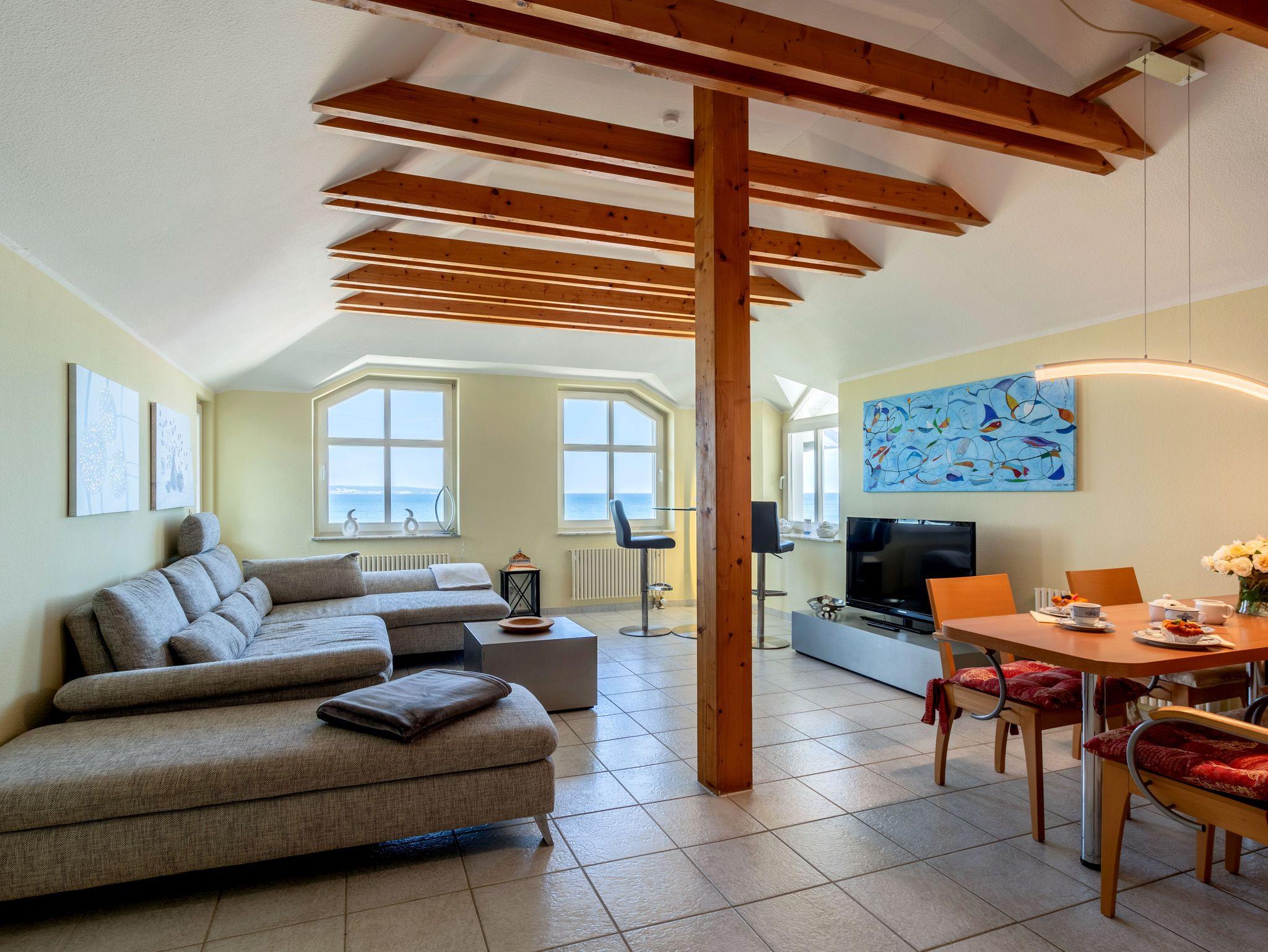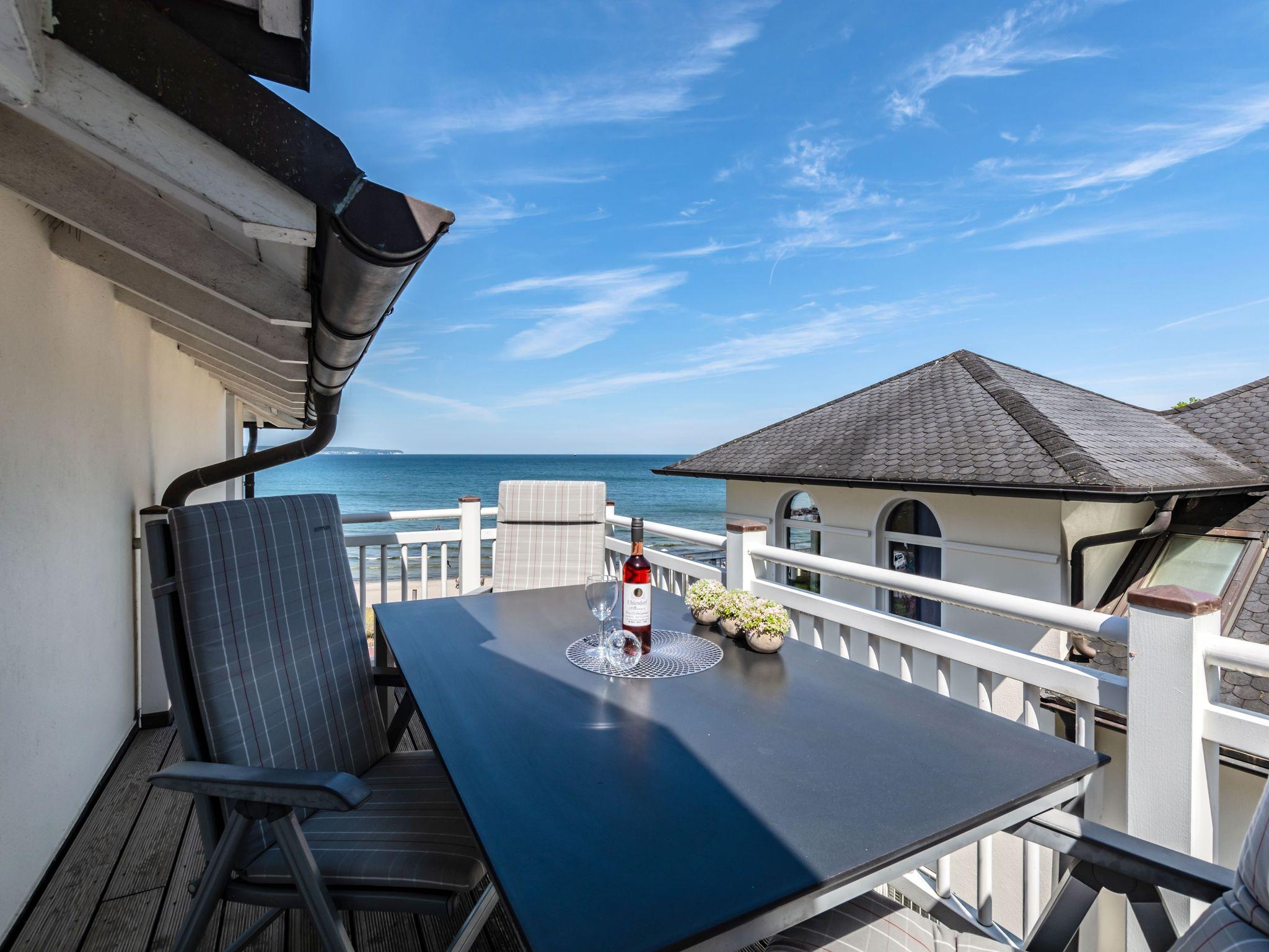 Dieses ca. 60 m² große 2-Raum-Apartment im Dachgeschoss der Villa Strandeck bietet Ihnen einen einzigartigen Ort für erholsame Tage an der Ostsee. Von hier oben genießen Sie einen atemberaubenden Blick über die gesamte Binzer Bucht bis hin zu den berühmten Kreidefelsen ? direkt vom Wohnzimmer aus.