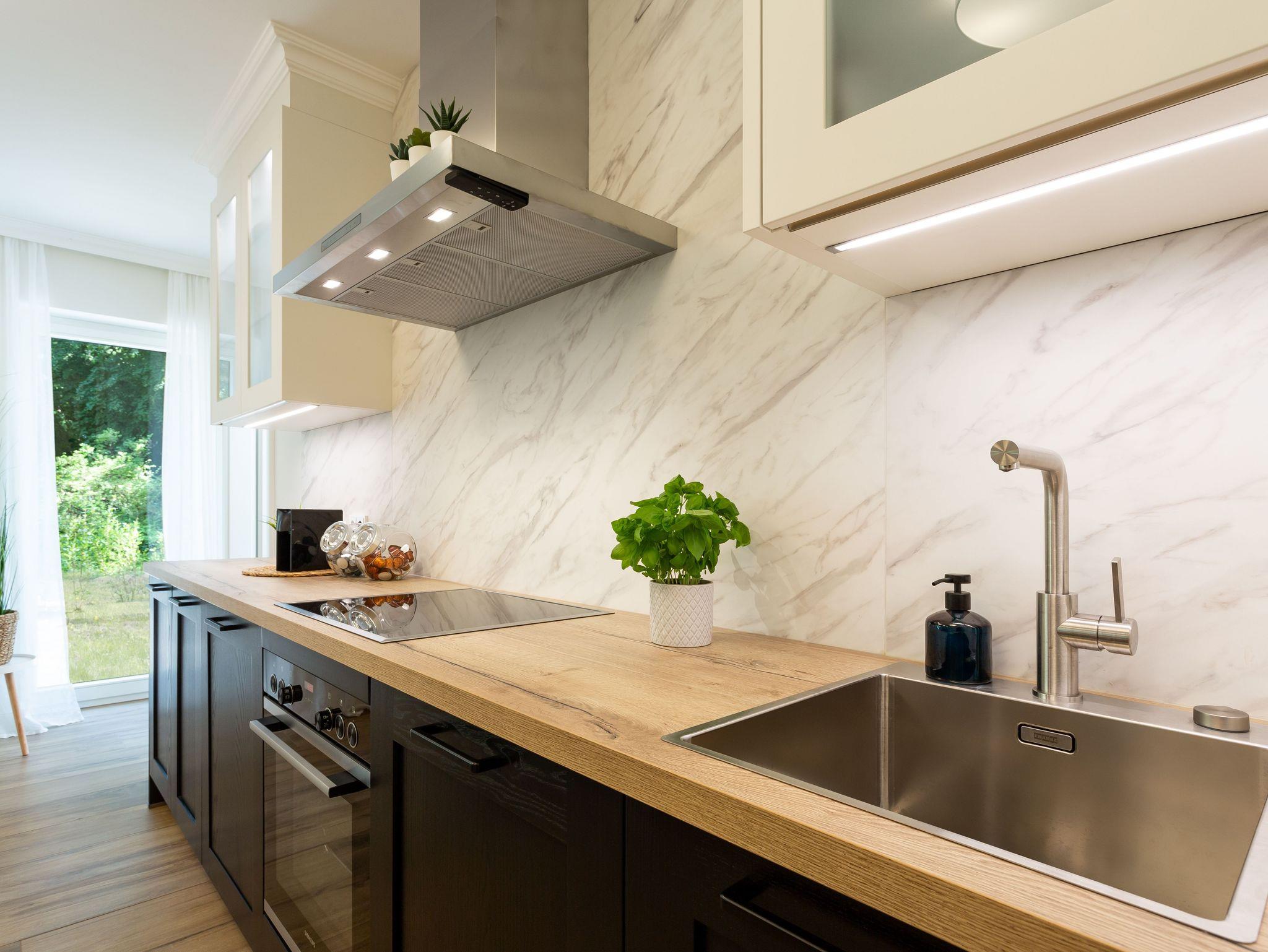 Die Küchenzeile ist integriert und mit Siemens Markengeräten versehen und voll ausgestattet - hier wird die Selbstverpflegung zum Kinderspiel.