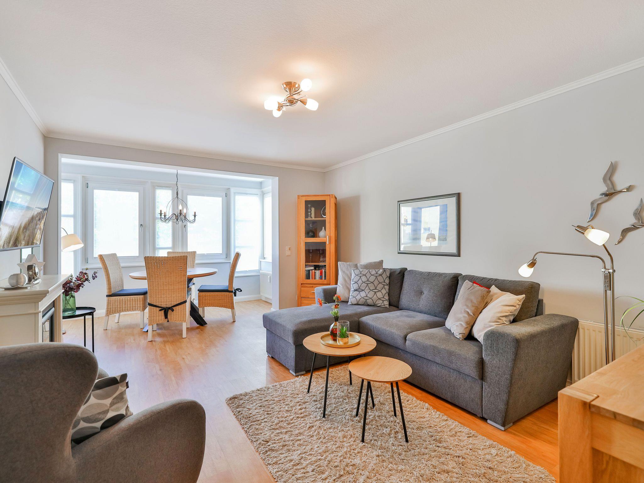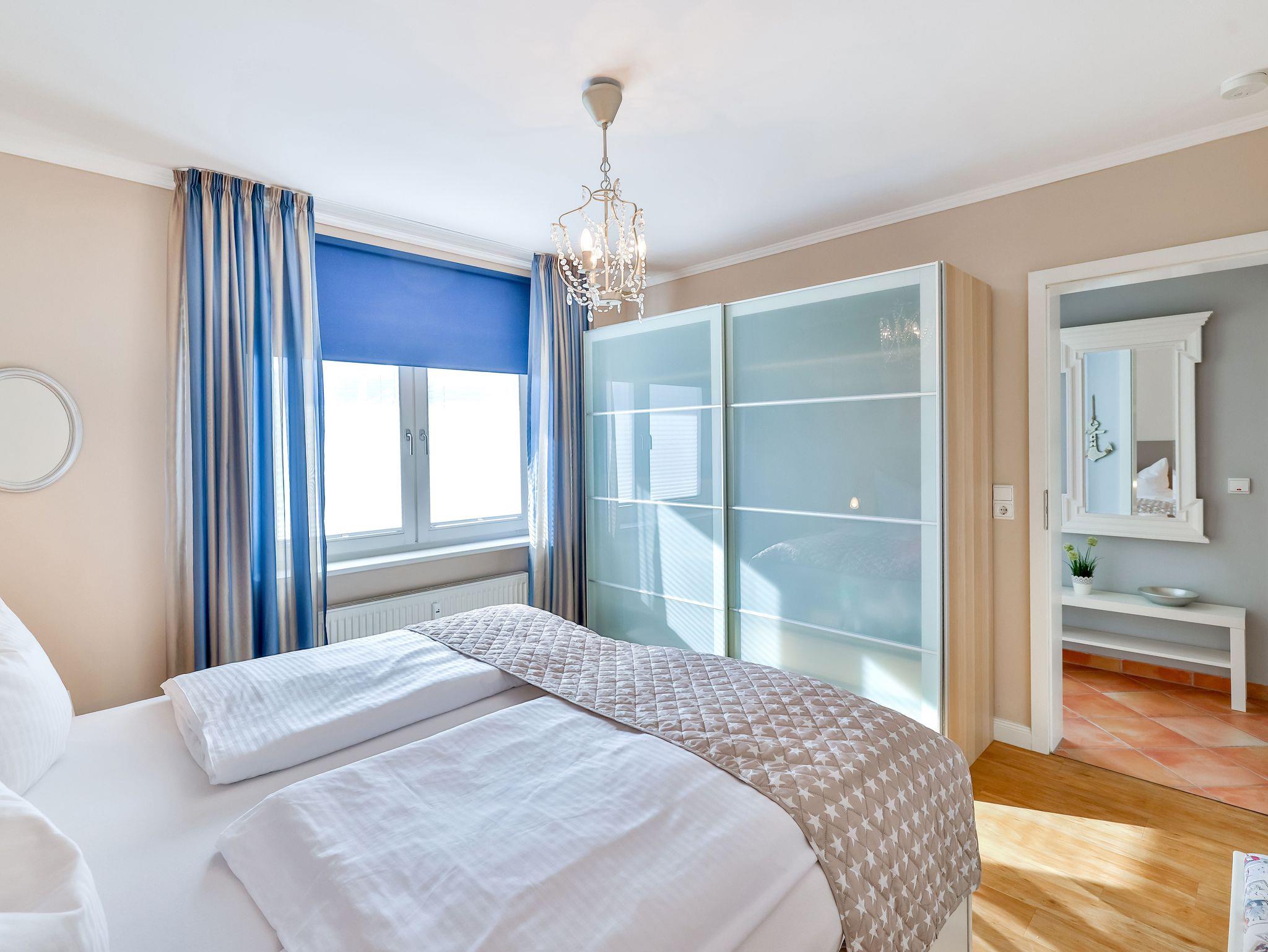 In der Ferienwohnung Bergen kann man sich nur wohlfühlen: sie ist ansprechend eingerichtet und gut ausgestattet: bis zu fünf Personen können übernachten, aber auch zu zweit kann man sich - gerne auch in getrennten Schlafzimmern - wohlfühlen. Das größere Schlafzimmer ist mit einem komfortablen Doppelbett (1,80 x 2,00m), verdunkelbaren Fenstern und TV sowie Kleiderschrank ausgestattet. Das zweite, etwas kleinere Schlafzimmer, verfügt über ein bequemes, französisches Bett mit der Größe 1,50x2,00m und einen Kleiderschrank. Im Wohnzimmer kann man es sich auf dem Sofa oder im Sessel vor dem Elektrokamin, vor dem Fernseher oder mit einem schönen Buch bequem machen. Im hellen Erker genießt man ein langes Ferienfrühstück oder ein leckeres Abendessen am Esstisch und die Küche ist mit Geschirrspüler, Mikrowelle und Espressomaschine bestens ausgestattet. Das Badezimmer hat eine Toilette, einen Waschtisch und eine Dusche. Eine Münzwaschmaschine und ein Münztrockner befinden sich im Keller. Am Strand steht Ihnen ein eigener Strandkorb kostenlos zur Verfügung (während der Sommermonate).
