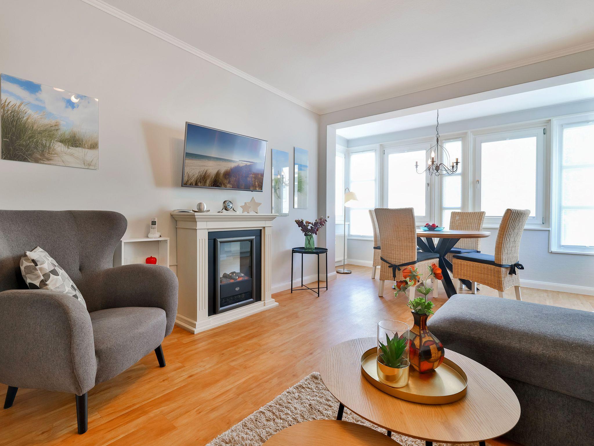 Herzlich willkommen in der Ferienwohnung Bergen im Haus Concordia in Binz! Nur wenige Gehminuten vom Strand und dem persönlichen Strandkorb (während der Saison) entfernt, können Sie sich in der modernen und stilvollen Ferienwohnung zu jeder Jahreszeit richtig wohlfühlen. Die Wohnung ist ansprechend ausgestattet und eingerichtet und bietet bis zu vier Erwachsenen und einem Kind Platz. Sie ist 65 qm groß und besteht aus einem gemütlichen Wohnzimmer mit Sitzecke, Elektrokamin und Flachbild-TV sowie einer Essecke im hellen Erker. Zwei Schlafzimmer mit komfortablen Betten, ein weiß gefliestes Duschbad und eine bestens ausgestattete Küche lassen keine Wünsche offen.