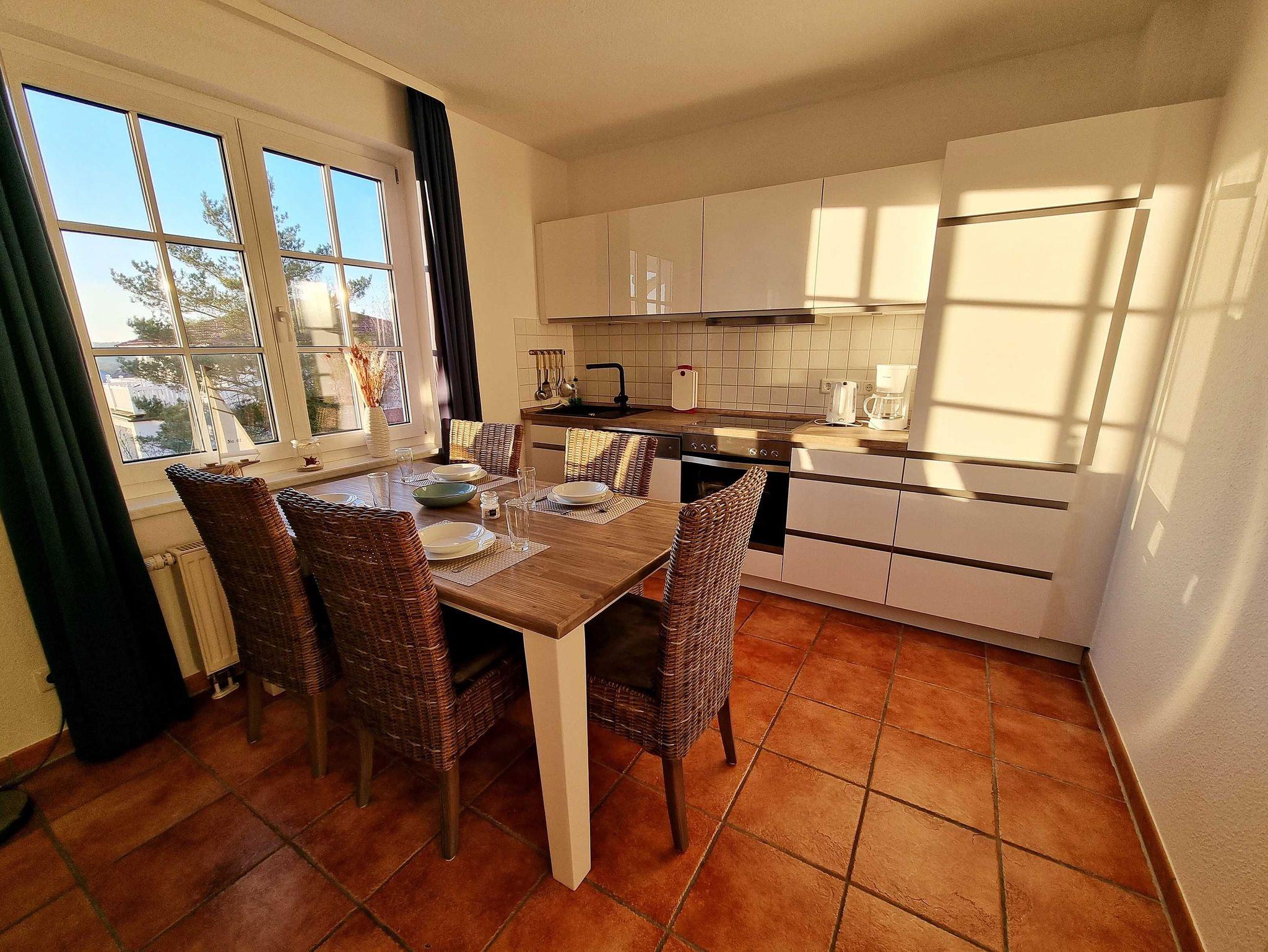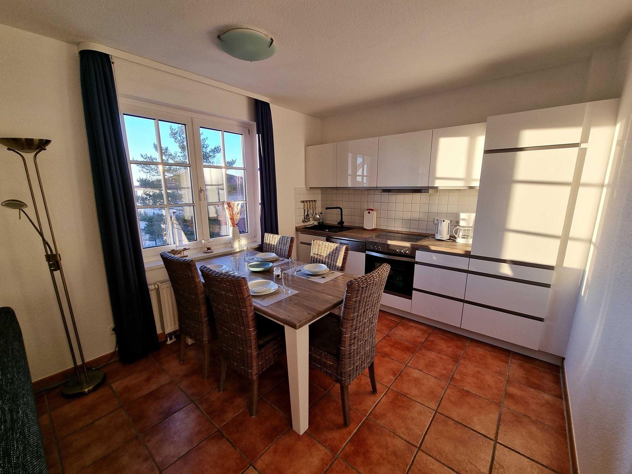 Die Villa Sanddorn ist im Ostseebad Binz, direkt am Waldrand der Granitz gelegen. Ruhig aber dennoch nur wenige Gehminuten bis zum Ortskern und zum feinsandigen Strand der Ostsee, zum Schmachter See und in den belebten Ortskern. Die Ferienwohnung 27 in der Villa Sanddorn ist ca. 48m² und für 4 Personen bestens geeignet. Vom Balkon hat man einen herrlichen Panoramablick über Binz. Das Wohnzimmer ist mit einer gemütlichen Schlafcouch, Sesseln und einem Flachbild TV, W-LAN, Radio, CD-Player, Kinderhochstuhl, eingerichtet. In der neuen, offenen Küche mit Essbereich ist alles für Ihren Urlaub vorhanden. Ein 4-Platten Cerankochfeld mit Backofen, Kühlschrank mit Gefrierfach, Spülmaschine, Filterkaffeemaschine, Toaster, Wasserkocher und reichlich Küchenutensilien sind selbstverständlich auch vorhanden. Die Wohnung bietet ein Schlafzimmer mit Doppelbett und Kleiderschrank. Im Schlafzimmer könnten Sie ein vorhandenes, kostenloses Kinderreisebett aufstellen. Das angrenzende Duschbad ist mit WC und Waschbecken ausgestattet. Auf dem Balkon kann man frühstücken oder abends den Sonnenuntergang genießen. Desweiteren steht ein kostenloser Tiegaragenstellplatz mit einer Parkhöhe von 1,50m und kostenloses W-LAN zur Verfügung.