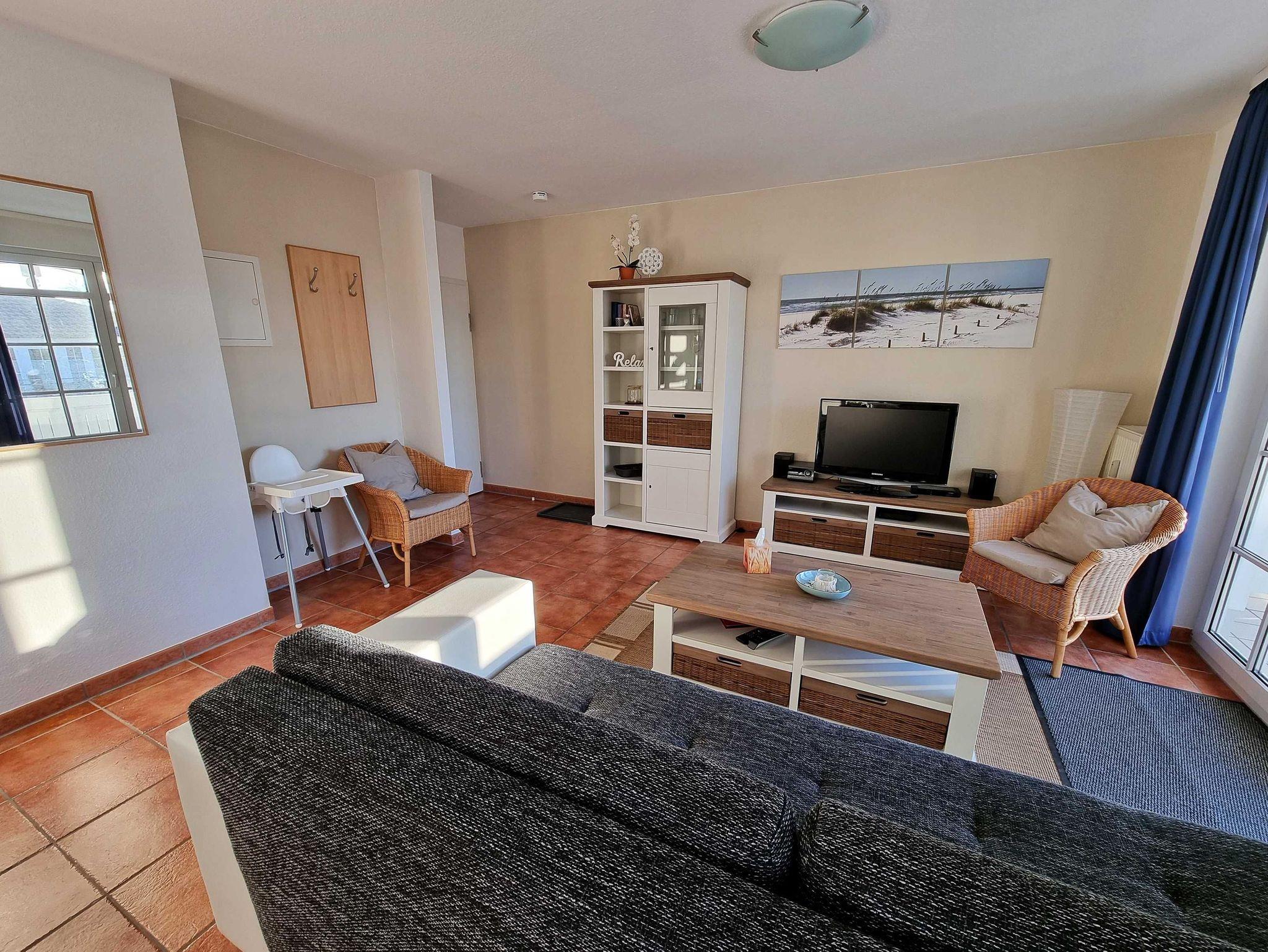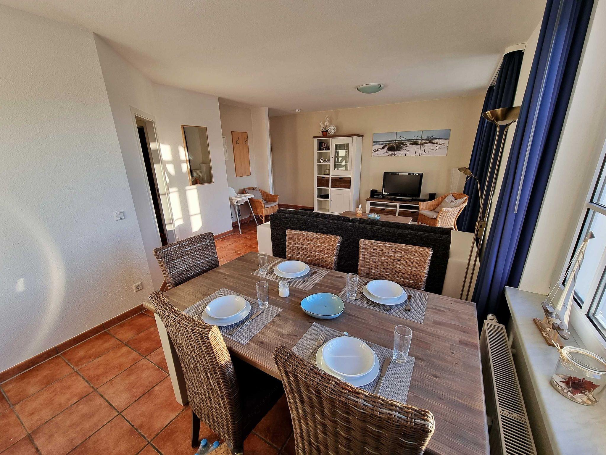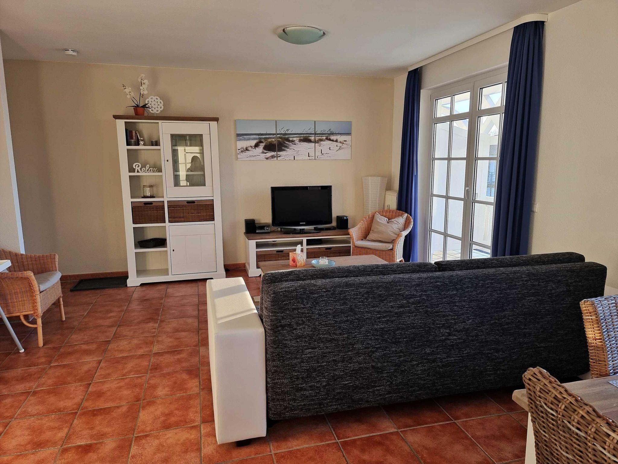 Das Wohnzimmer ist mit einer gemütlichen Schlafcouch, Sesseln und einem Flachbild TV eingerichtet. In der offenen Küche mit Essbereich ist alles für Ihren Urlaub vorhanden. Ein 4-Platten Herd mit Backofen, Kühlschrank mit Gefrierfach, Spülmaschine,Filterkaffeemaschine, Toaster, Wasserkocher, und reichlich Küchenutensilien sind selbstverständlich. Das Schlafzimmer ist mit einem gemütlichen Doppelbett und Kleiderschrank eingerichtet. Das Bad ist mit einer Dusche und WC ausgestattet.