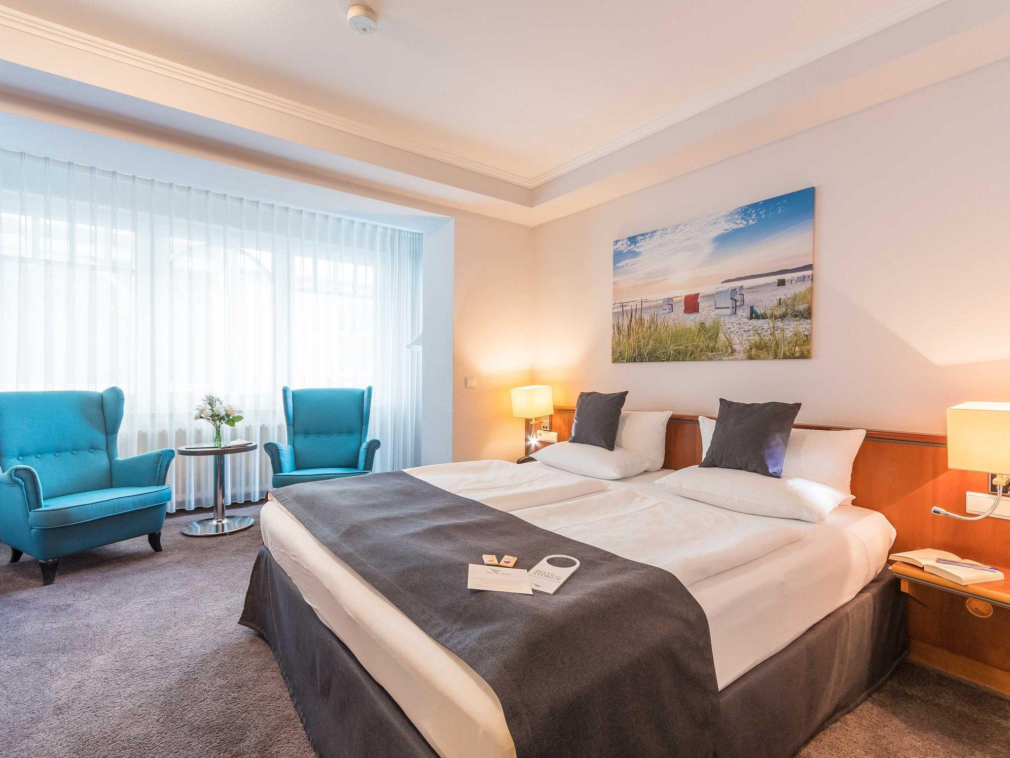 Alle unsere Zimmer sind liebevoll eingerichtet und bestechen mit einmaligem Komfort. Die modernen Bäder sind kleine Wohlfühl-Oasen mit viel Raum zur freien Entfaltung, alle Räumlichkeiten sind mit TV, Telefon, Zimmersafe und einer Minibar ausgestattet. Unsere mondänen Suiten verfügen außerdem über einen vollausgestatteten Küchenbereich sowie eine einladende Badewanne ? zum Träumen und Genießen. Besonders eindrucksvoll: Aus vielen unserer Doppelzimmer und Juniorsuiten haben Sie einen unvergesslichen Panoramablick auf die Ostsee.