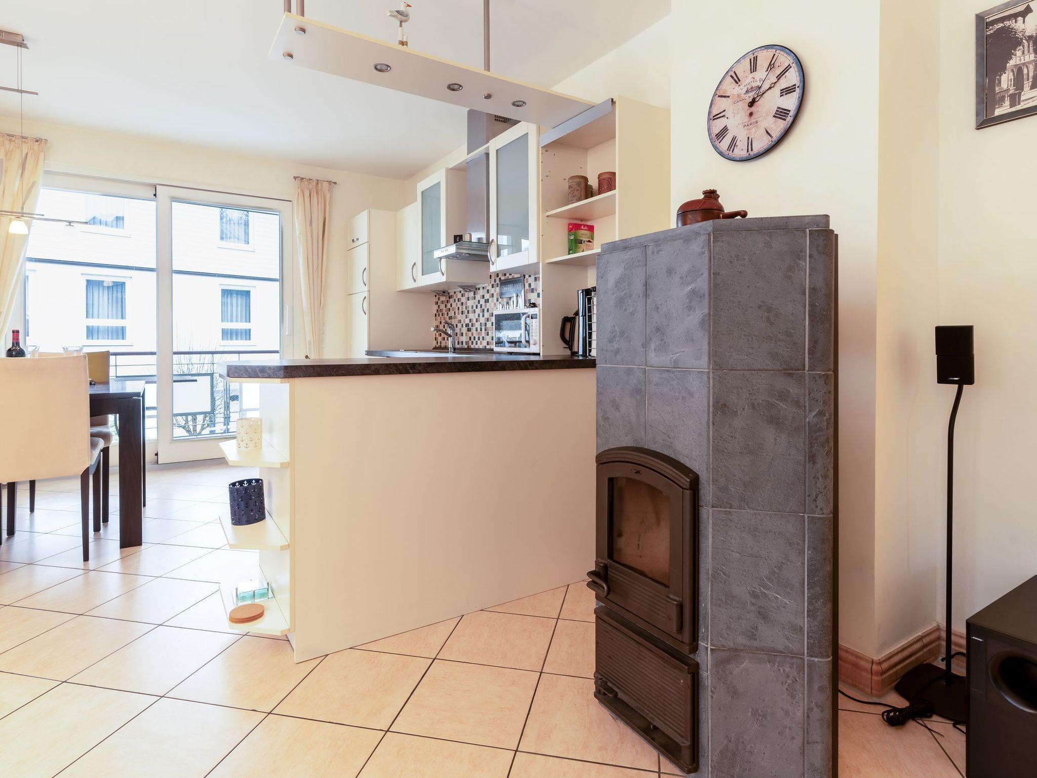 Der Mittelpunkt der Wohnung ist der geräumige Wohnbereich mit einer gemütlichen Sitzecke. Für Unterhaltung ist bestens gesorgt: Ein Flachbildfernseher, Stereo-Anlage und kostenfreies W-LAN stehen Ihnen zur Verfügung. Ein besonderes Highlight ist der große Kaminofen, der an kühleren Tagen für wohlige Wärme sorgt. Vom Wohnzimmer aus gelangen Sie direkt auf den überdachten Balkon in Südlage perfekt für entspannte Stunden an der frischen Luft. Auch ein Schreibtisch ist vorhanden, falls Sie Urlaubspost erledigen müssen.