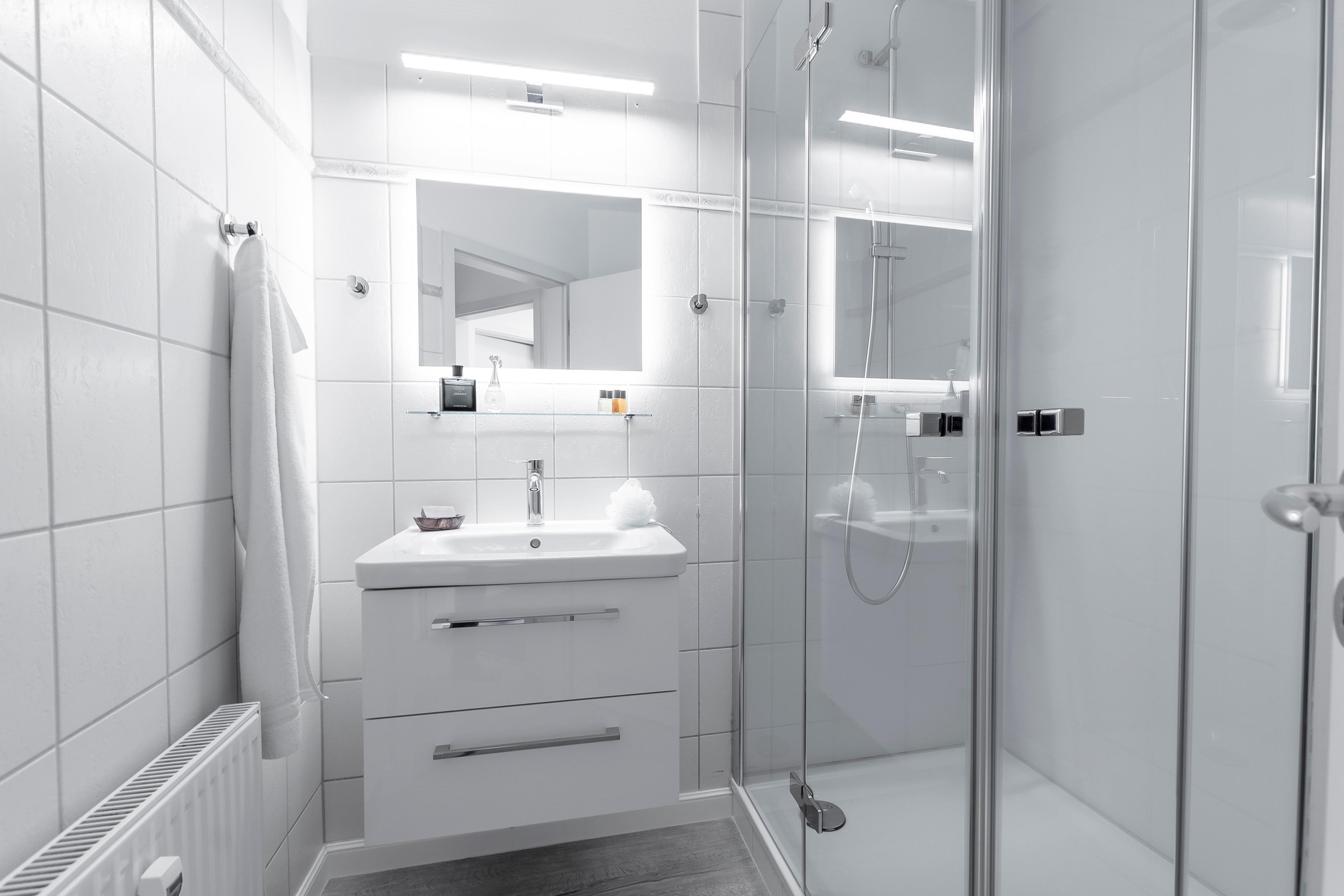 In den 45 bis 90 m² großen Ferienwohnungen bieten wir unseren Gästen hochwertig eingerichtete Wohn- und Schlafzimmer, sowie ein geräumiges Duschbad.