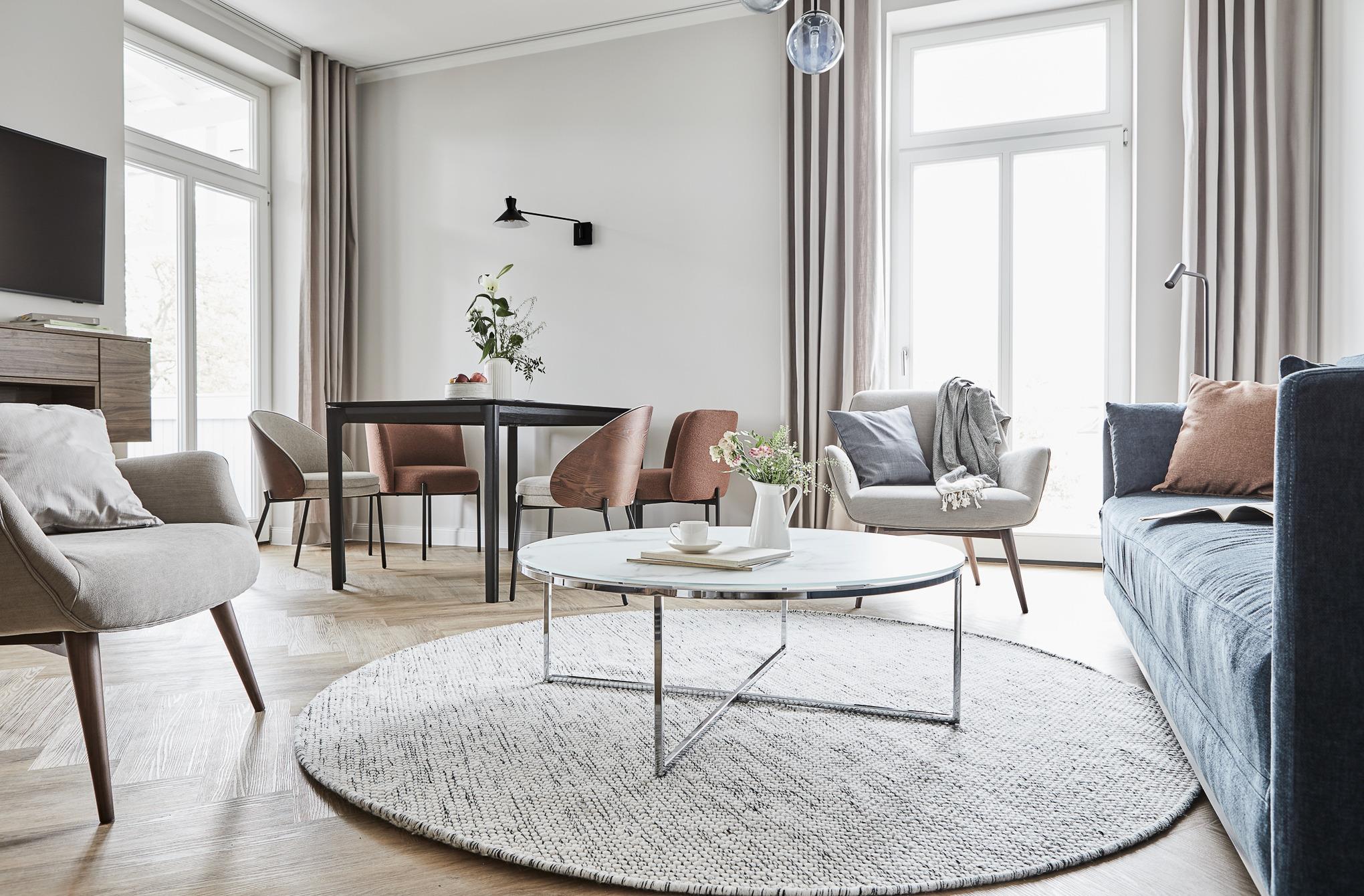 Die Deluxe Wellness Suite mit Balkon und Dampfbad befindet sich in der 1. Etage und verfügt über geräumige ca. 83 m2, über 2 Schlafzimmer und einen separaten Wohnraum, einer offenen Küchenzeile sowie 2 Badezimmer und 1 Dampfbad.