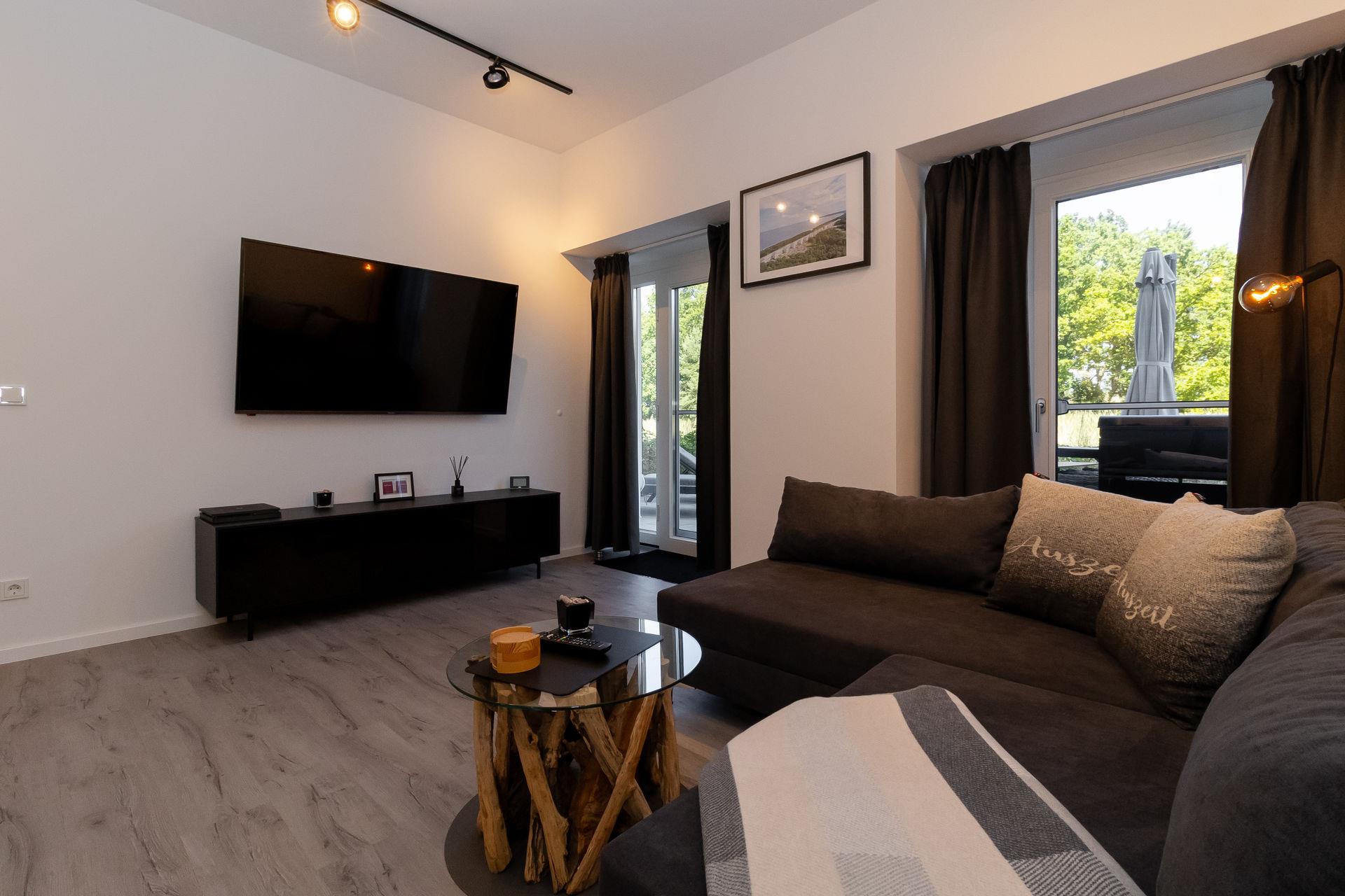 Vom Wohnbereich aus erreichen Sie zwei geräumige Schlafzimmer, jeweils mit TV. Beide Zimmer liegen auf der Seeseite, sodass Sie das Meeresrauschen hören und bei geöffnetem Fenster einschlafen können. Insektenschutzgitter ermöglichen auch im Sommer ungestörte Nächte.