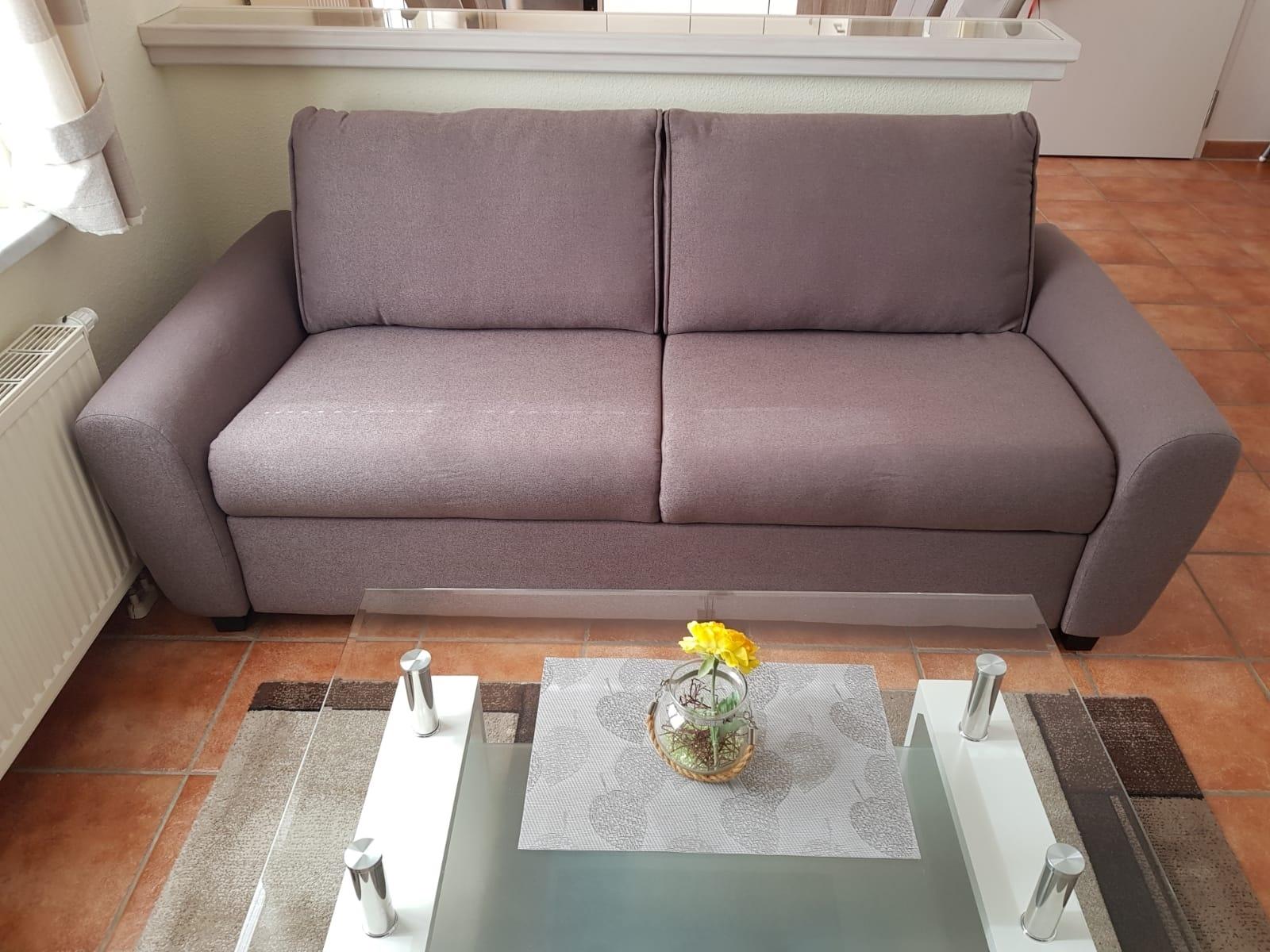 Im geschmackvoll ausgestatteten Wohnbereich lädt eine bequeme Couch (Schlafmöglichkeit für weitere 2 Personen) und ein Flachbildfernseher mit Smart-TV-Funktion zu geselligen Abenden ein. Der Essbereich ist im Wohnbereich integriert und ein Tisch mit 4 Stühlen bietet hier ausreichend Platz zum gemeinsamen Essen.
