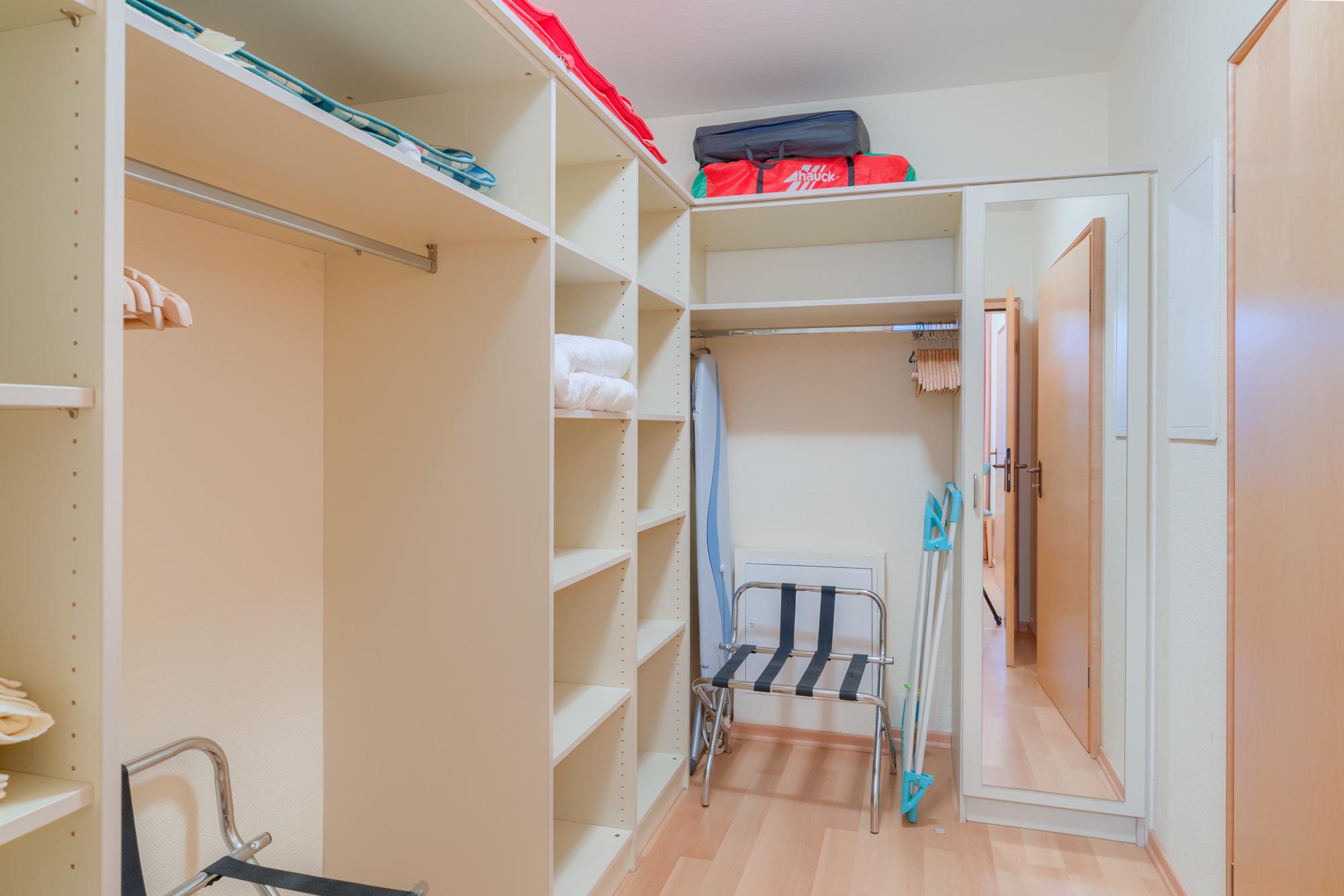 Im Schlafzimmer bietet Ihnen ein Doppelbett ausreichend Platz für einen erholsamen Schlaf. Ihre Urlaubskleidung können Sie im geräumigen Schrankraum unterbringen.