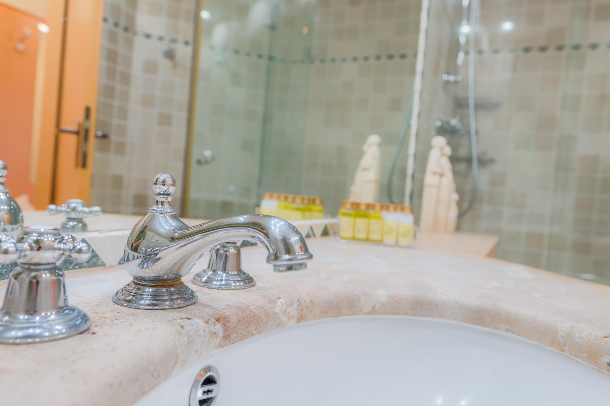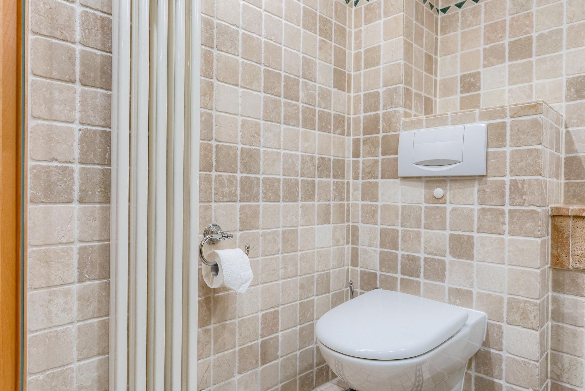 Das Badezimmer ist mit einer Dusche und WC ausgestattet.
