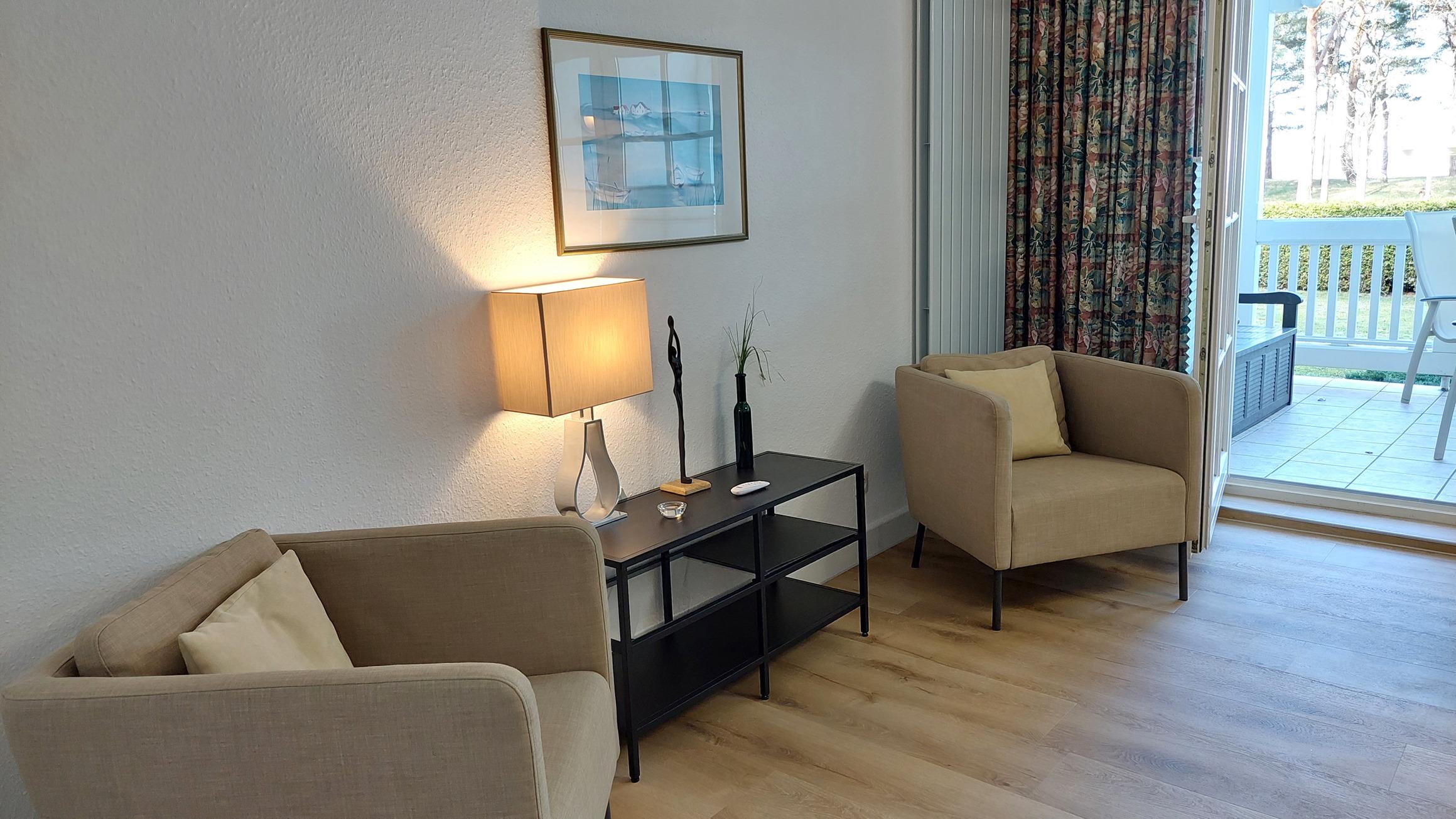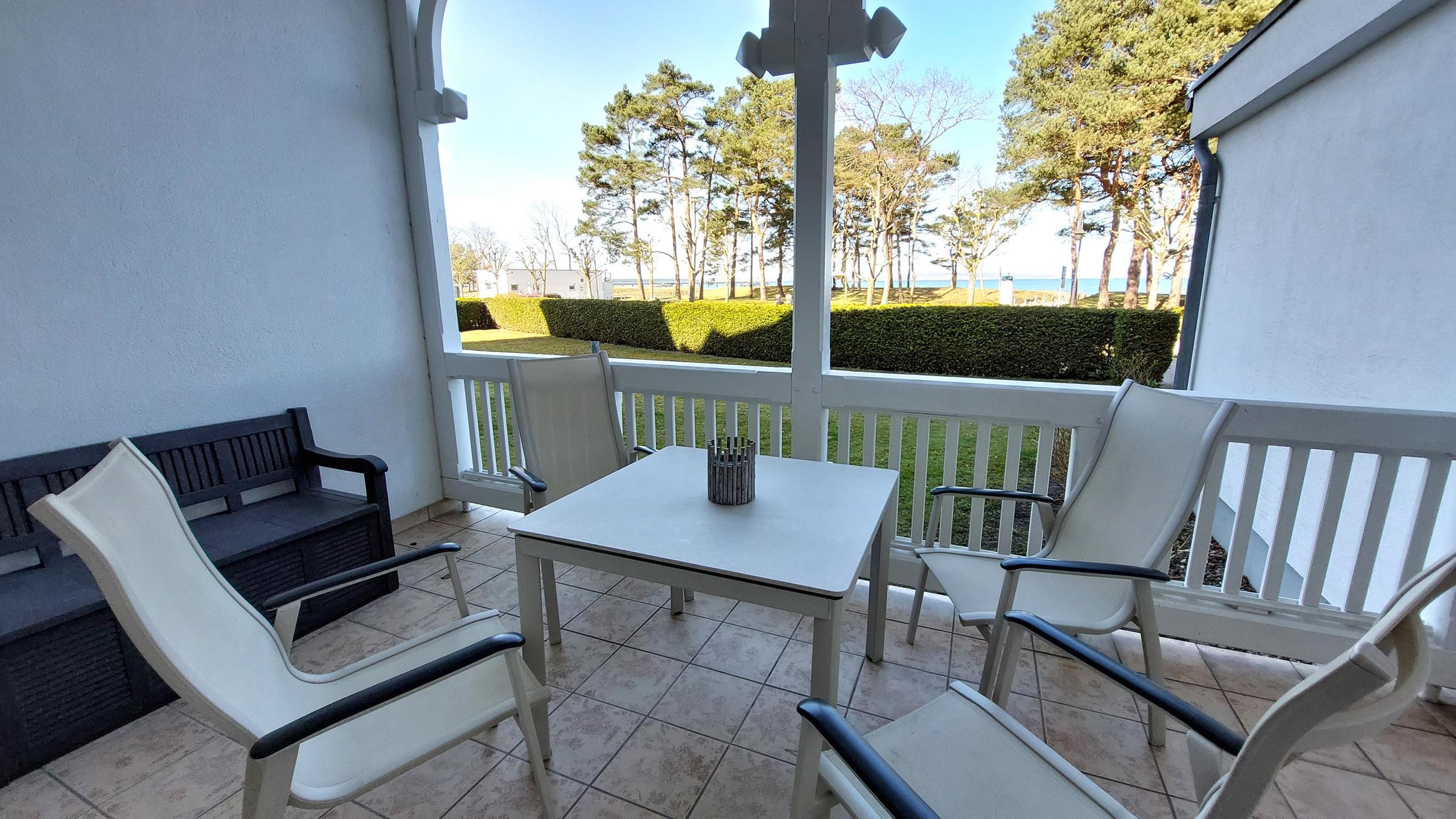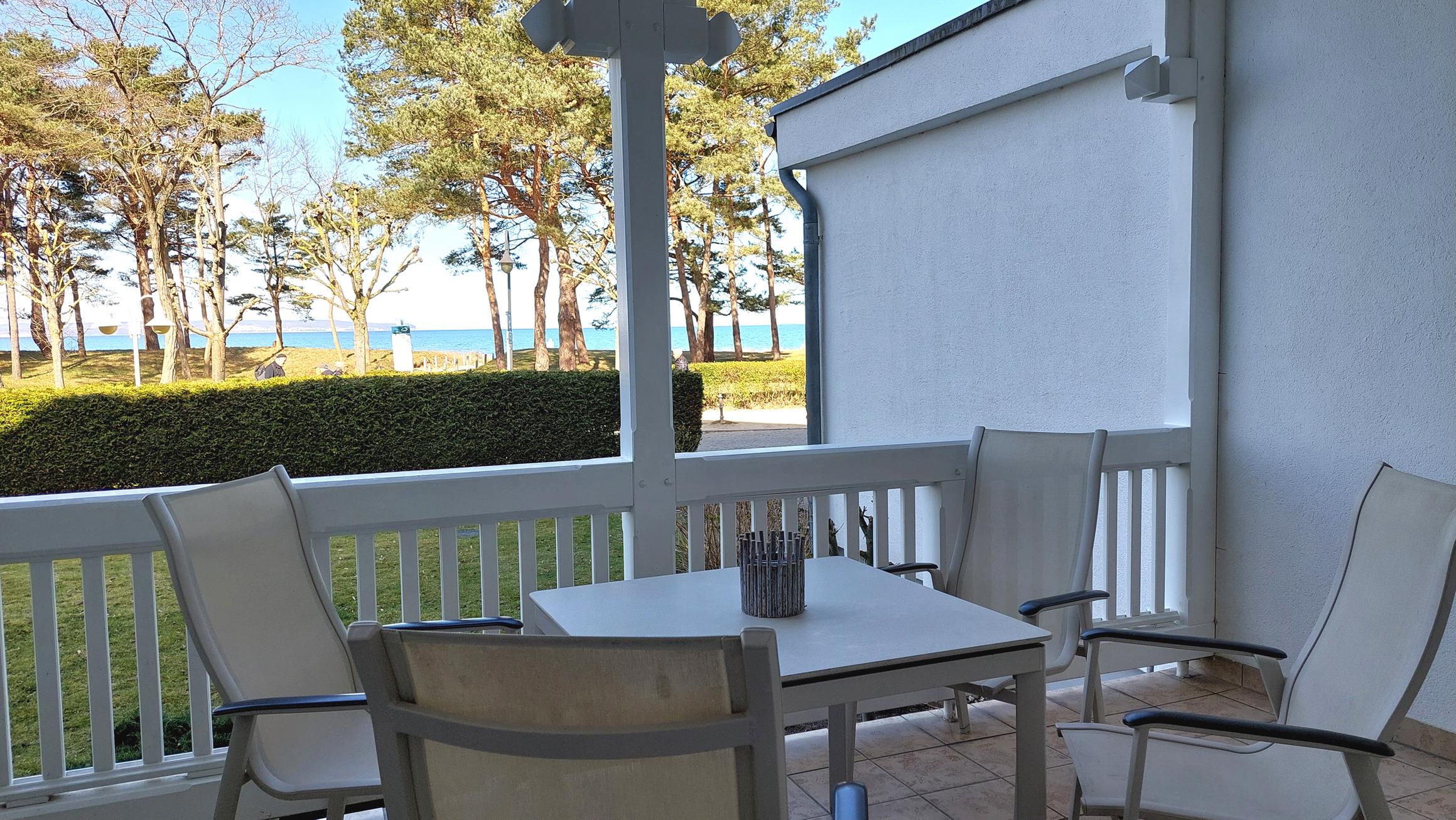 Highlight ist sicherlich der große Wohnbereich mit Zugang zur möblierten Terrasse. Dieser lädt, mit Panoramablick auf die Ostsee, zum Verweilen ein.