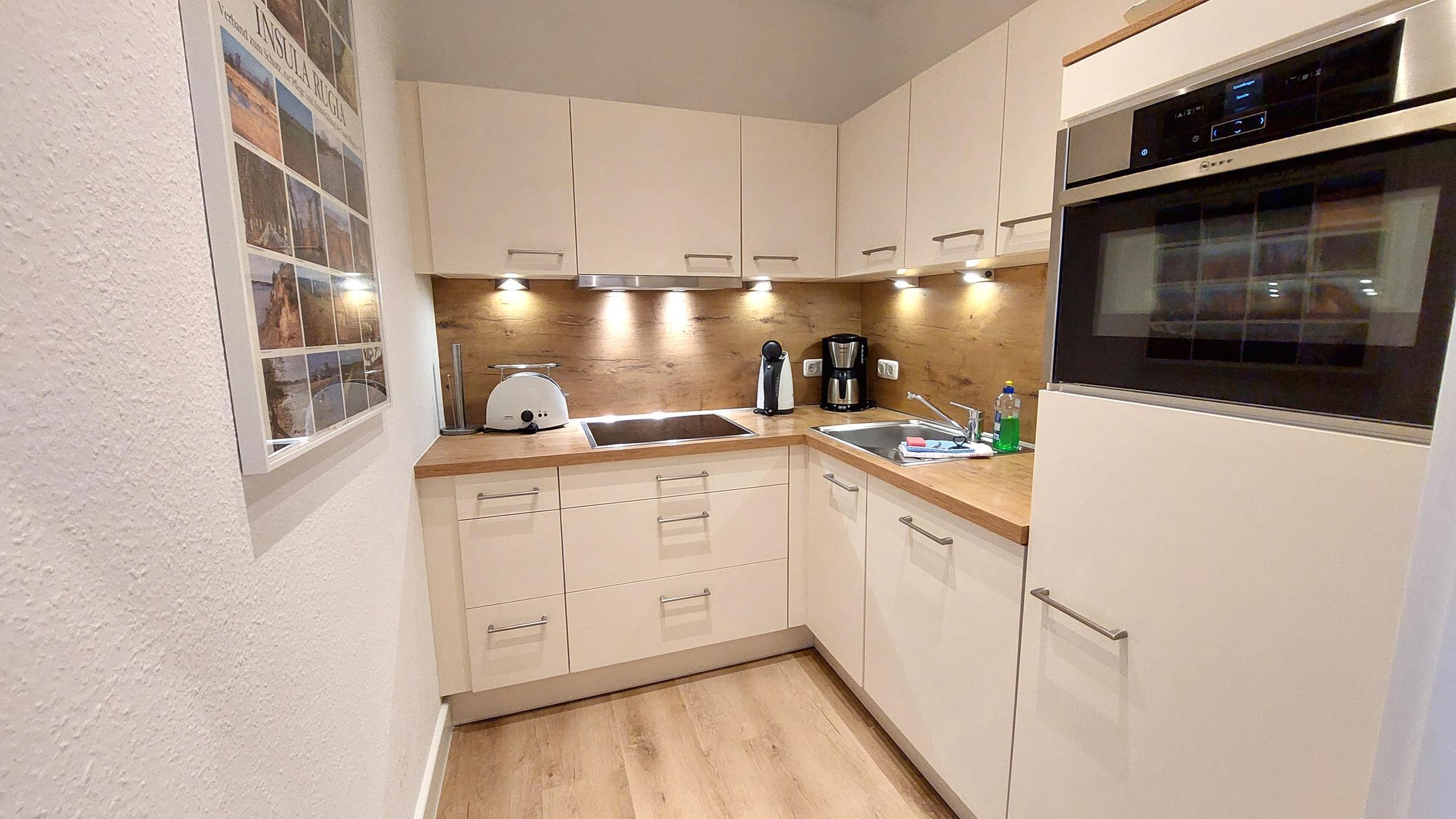 In der modernen Küchenzeile finden Sie ein Cerankochfeld, ein kombinierten Backofen/Mikrowelle, Heißluftfriteuse, einen Geschirrspüler, einen Kühlschrank mit Gefrierfach und viele weitere nützliche Küchenhelfer.