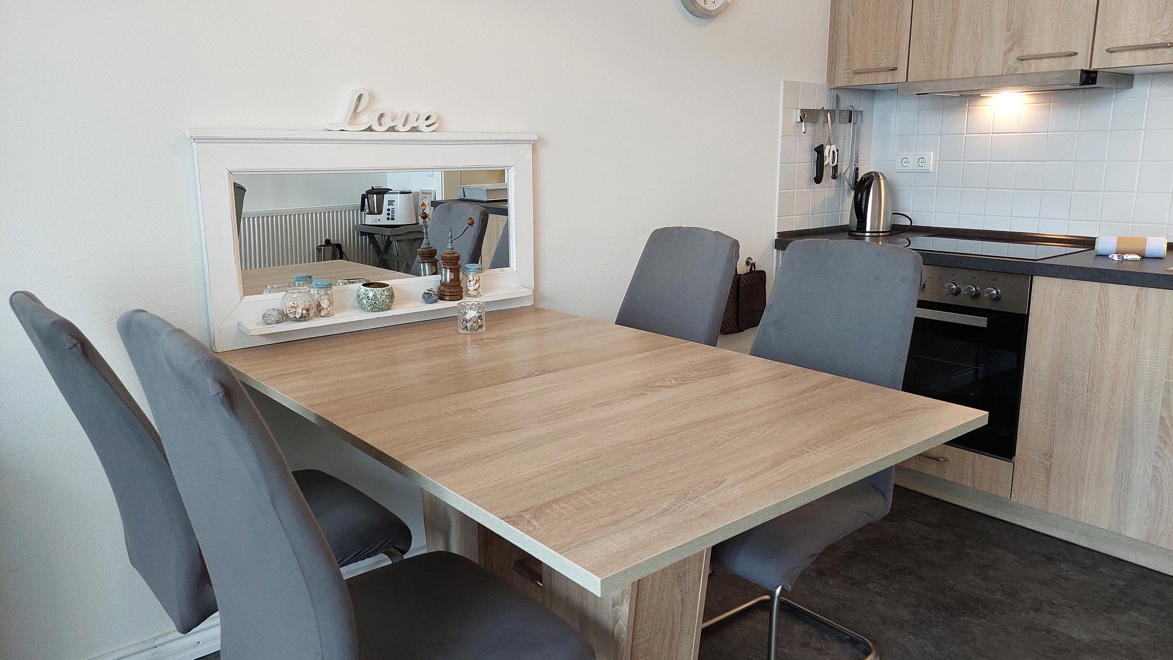 Der Esstisch samt Sitzgelegenheiten für 4 Personen und eine gemütliche Sitzlandschaft laden zum Verweilen ein.