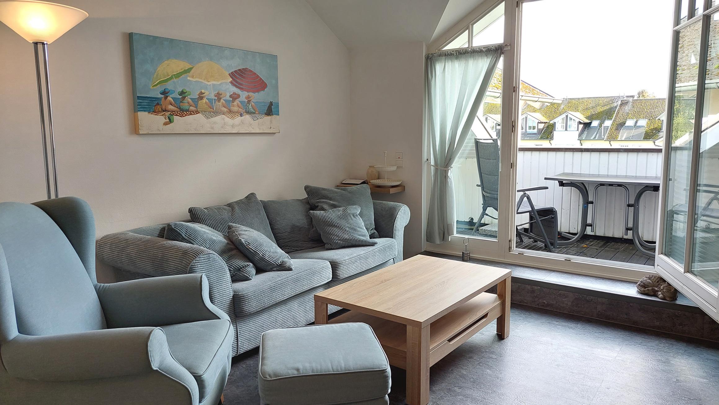 Sie ist 64 m² groß und verfügt über einen Balkon in den Dünenparkinnenhof.