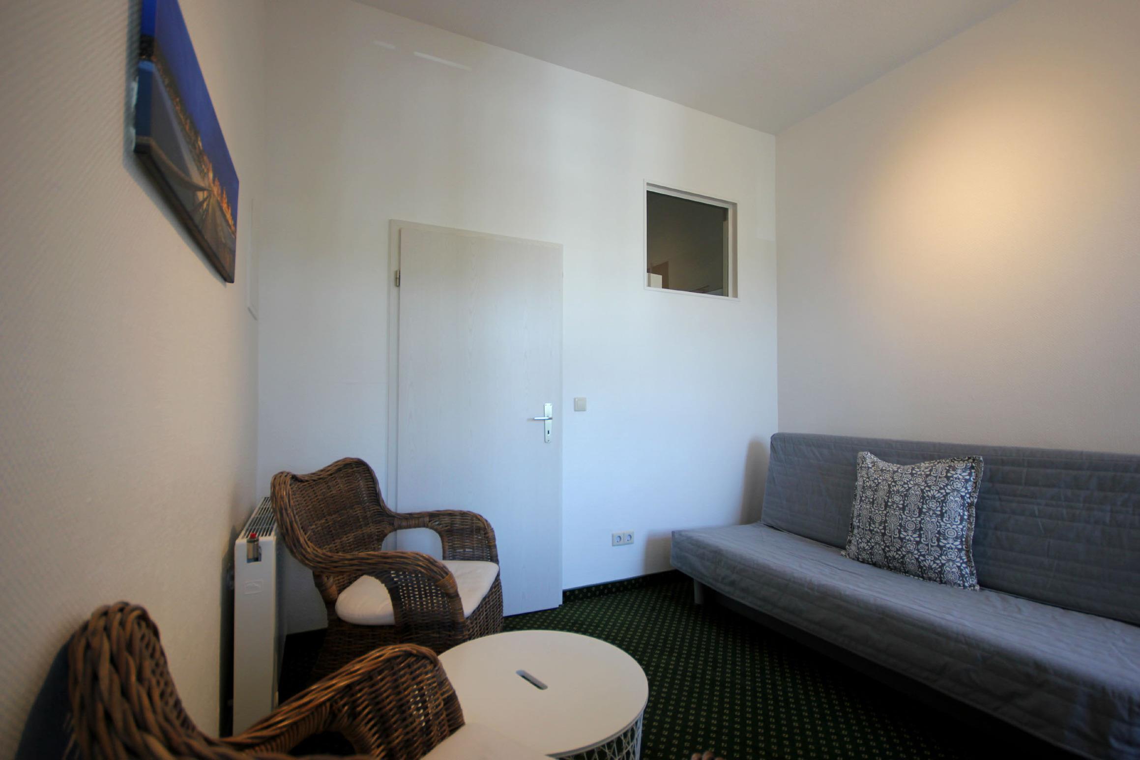 Diese freundliche Wohnung ist aufgeteilt in einen Wohnraum mit integrierter Küche sowie einem Verbindungszimmer, ein Schlafzimmer sowie ein modernes Duschbad mit Waschtisch und WC. Das Wohnzimmer begrüßt Sie mit zwei Schwingsessel sowie Flachbild-TV. Zudem bietet ein Schlafsofa (1,60m x 2m) zwei zusätzlichen Personen eine Schlafmöglichkeit. Das geräumige Schlafzimmer verfügt über ein Doppelbett (1,60m x 2m) sowie einen Kleiderschrank. Die neuwertige Küchenzeile ist mit Kühlschrank mit kleinem Gefrierfach, Cerankochfeld, Nespresso-Maschine, Backofen, Geschirrspüler, Kaffeemaschine, Wasserkocher und Toaster komplett ausgestattet. Highlights: Kostenfreies WLAN sowie ein wohnungseigener PKW-Stellplatz direkt am Haus.