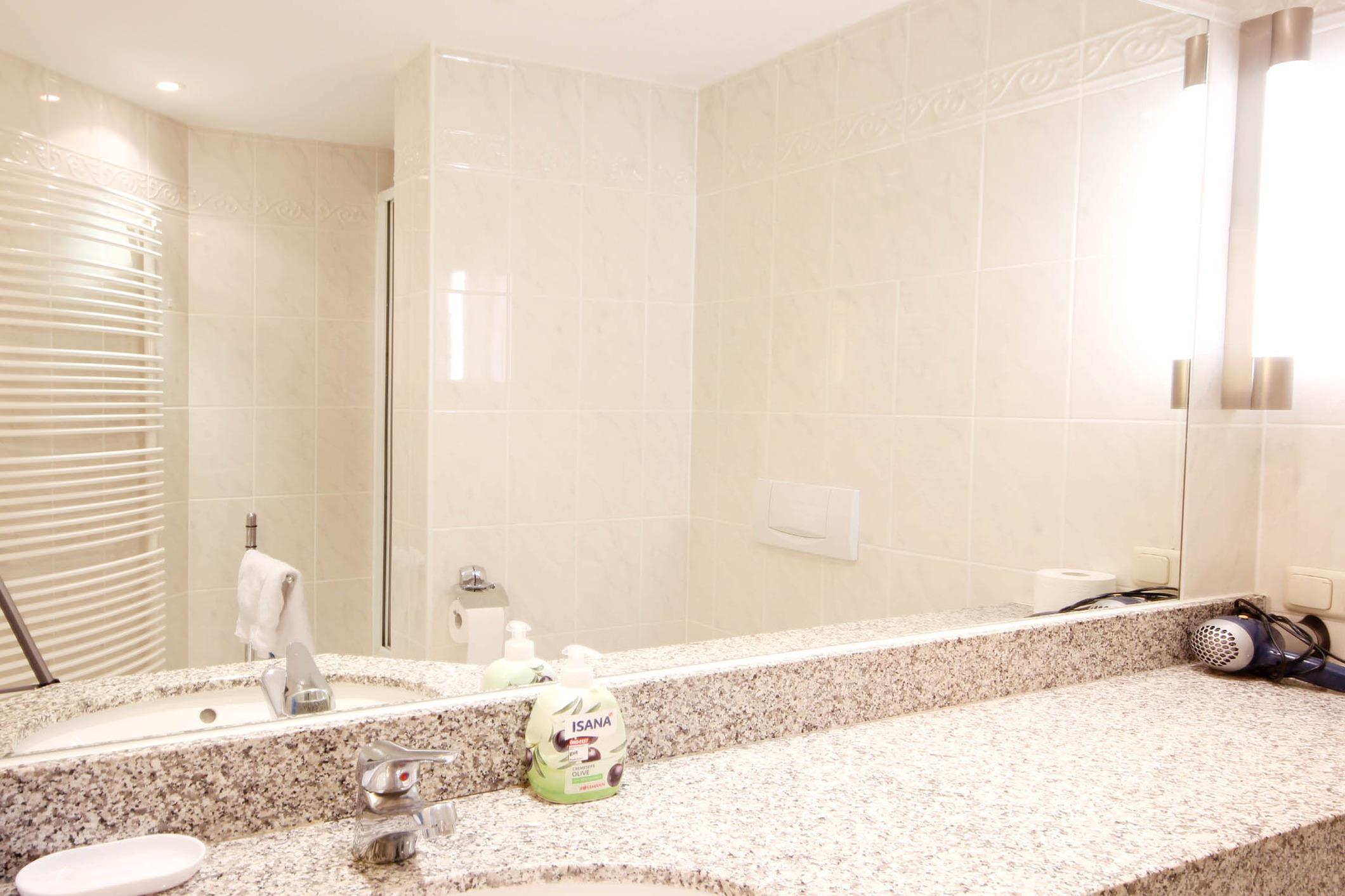 Ihre 1-Zimmerwohnung 23RB12 hat eine Größe von ca. 30 qm und ist für 2 Personen eingerichtet. Sie befindet sich im 1. Obergeschoss und verfügt über einen Südbalkon. Dem kombinierten Wohn- Schlafraum schließt sich eine halboffene Küche und der Balkon an. Vom vorgelagerten Flur aus erreichen Sie das geräumige Duschbad. Im Wohn-Schlafraum finden Sie neben einer Sitz- und einer Essecke ein massives Doppelbett, ein Flachbildfernseher und ein Radio. Die Küche verfügt u.a. über Backofen, Cerankochfeld, Geschirrspülmaschine, Kühlschrank, Kaffeemaschine, Toaster und Wasserkocher. Im Flur finden Sie einen geräumigen Kleiderschrank.
