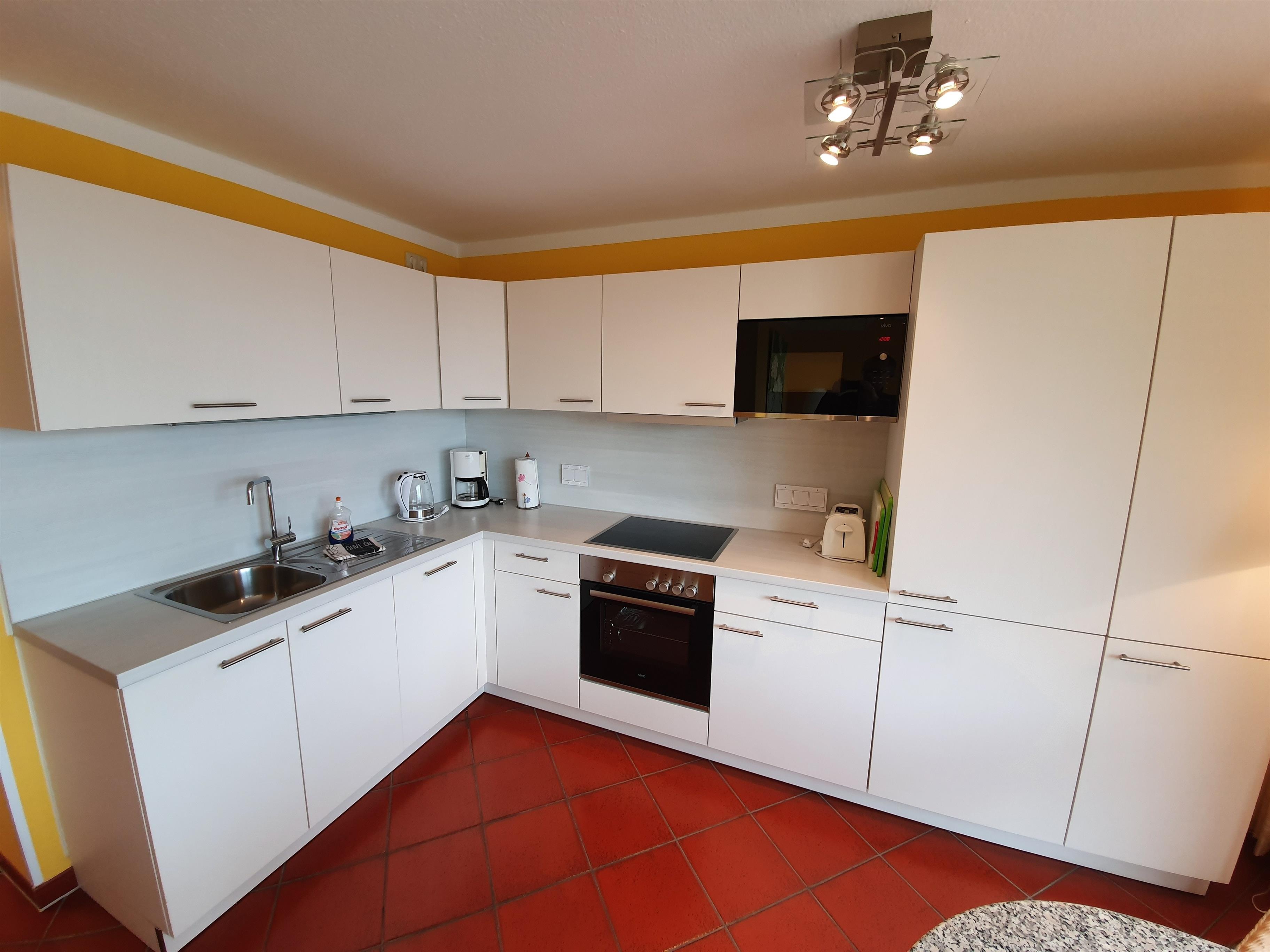 Ihre Wohnung ist aufgeteilt in einen Wohnraum mit Zugang zum Balkon, eine offene Küche, ein separates Schlafzimmer und ein Tageslichtbad mit Waschtisch, Glasdusche und WC. Das Wohnzimmer ist mit einem Essplatz und einer Sitzgruppe möbliert. Die technische Ausstattung beinhaltet ein Flachbild-TV, WLAN und Radio. Die Küche ist mit Kühlschrank, Cerankochfeld, Geschirrspüler, Gefrierschrank, Backofen, Mikrowelle, Kaffeemaschine, Wasserkocher und Toaster komplett ausgestattet. Das Schlafzimmer verfügt über ein Doppelbett und Verdunklungsmöglichkeiten.
