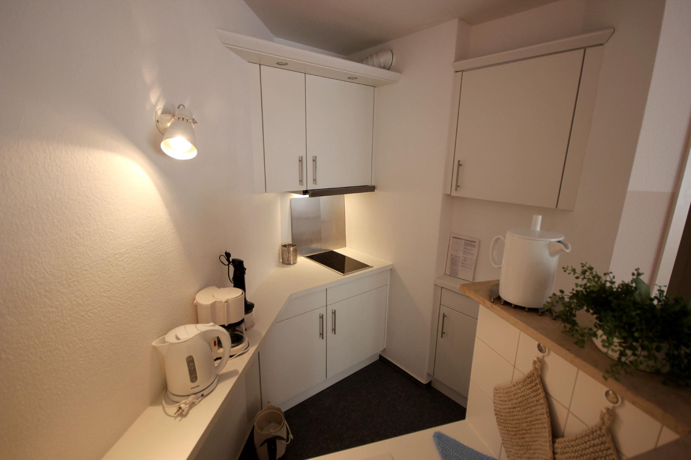 Ihre gemütliche Ferienwohnung 12RB5 befindet sich im 1. Obergeschoss der Villa und ist für bis zu 2 Personen ausgestattet. Sie hat eine Größe von ca. 43 m² und verfügt über einen Wintergarten nach Osten. Die Wohnung hat neben dem Wohnraum mit integrierter Kochzeile einen separaten Schlafraum, einen Flur und ein Badezimmer mit Waschtisch, Kosmetikspiegel, Haartrockner, Dusche und WC. Im Schlafraum befinden sich ein Doppelbett sowie ein Kleiderschrank. Im Wohnraum finden Sie neben der Sitzecke einen TV und WLAN. Die Kochecke ist mit 2-Cerankochfeldern, Kühlschrank, Kaffeemaschine, Toaster, Wasserkocher und weiteren Küchenhelfern ausgestattet. Vom Wohn- und Schlafbereich gelangen zum Wintergarten mit Essbereich. Ein wohnungseigener Stellplatz steht für Sie direkt in der Tiefgarage zur Verfügung. Ebenso befindet sich ein abschließbarer Fahrradraum im Keller des Hauses.