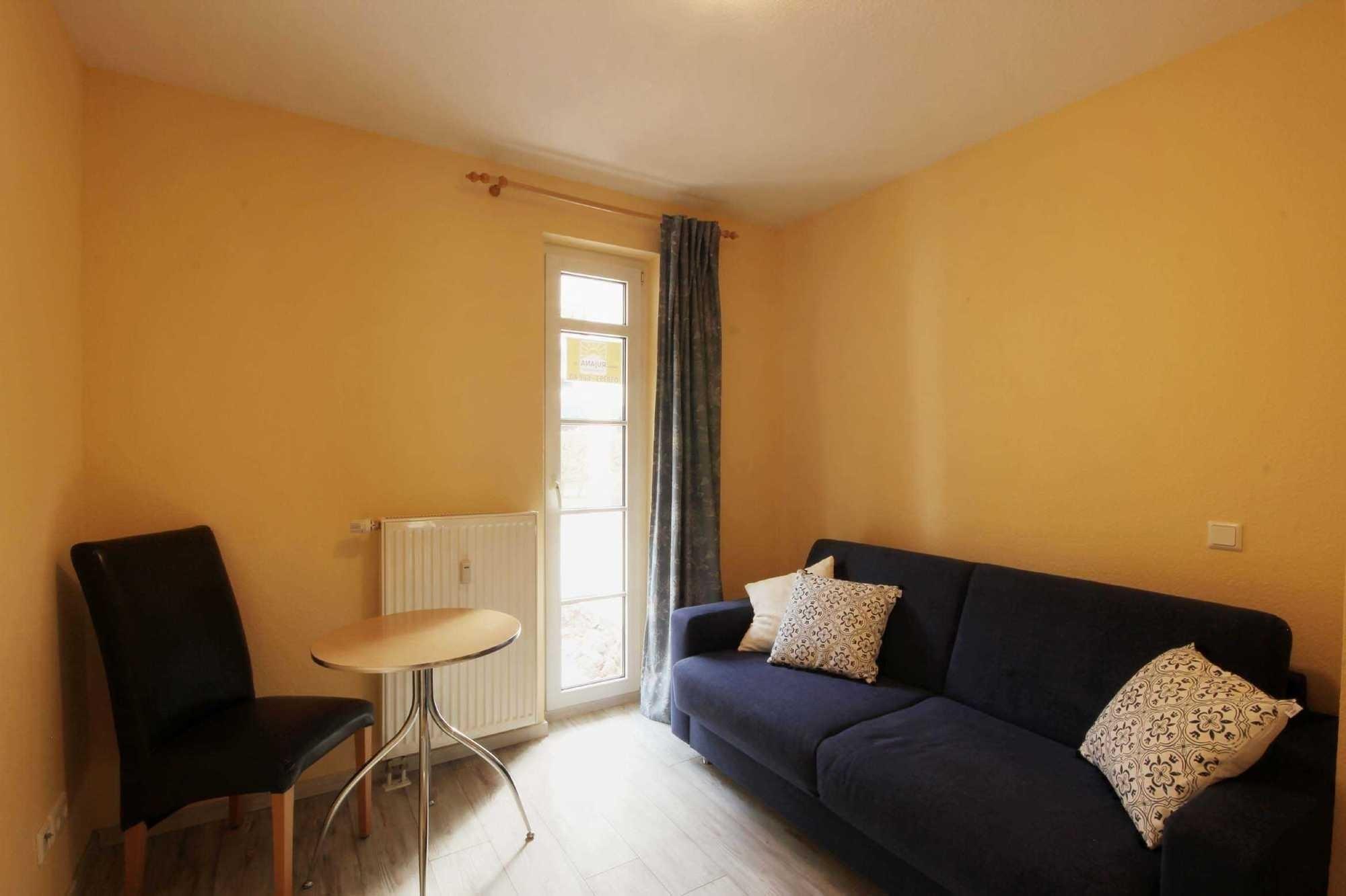 Die Wohnung 9RB33 befindet sich im Erdgeschoss der Villa Bernstein am Klünderberg 33. Die 3-Zimmer-Wohnung hat eine Größe von 56 m² und ist mit bis zu 6 Personen belegbar. Neben dem Wohnzimmer mit offener Küche gibt es 2 Schlafzimmer und ein Duschbad mit Waschtisch und WC. Ein Schlafraum ist mit einem Doppelbett und Kleiderschrank ausgestattet. Das 2. Schlafzimmer verfügt über eine Schlafcouch. Das Wohnzimmer verfügt ebenfalls über eine Schlafcouch, einen Esstisch, Flachbildfernseher, WLAN und Radio. Vom Wohnzimmer aus gelangen Sie auf die kleine Südterrasse. Die Küchenzeile ist mit Backofen, E-Herd mit 4 Kochplatten, Geschirrspüler, Kaffeemaschine, Wasserkocher und Toaster perfekt ausgestattet.