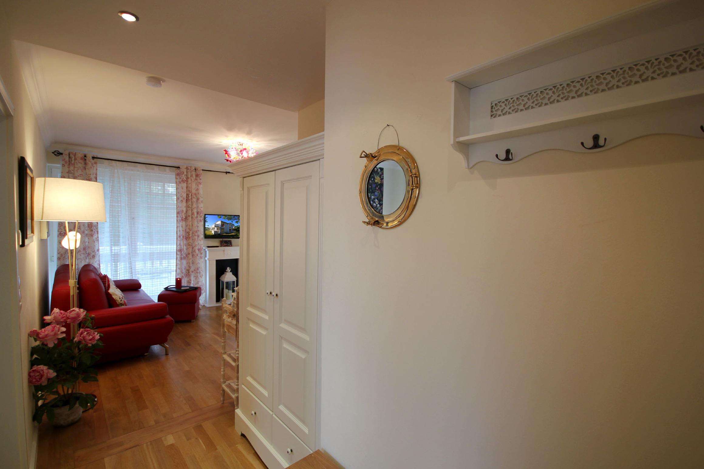 Im Flurbereich der Wohnung bietet ein Kleiderschrank weiteren Stauraum.