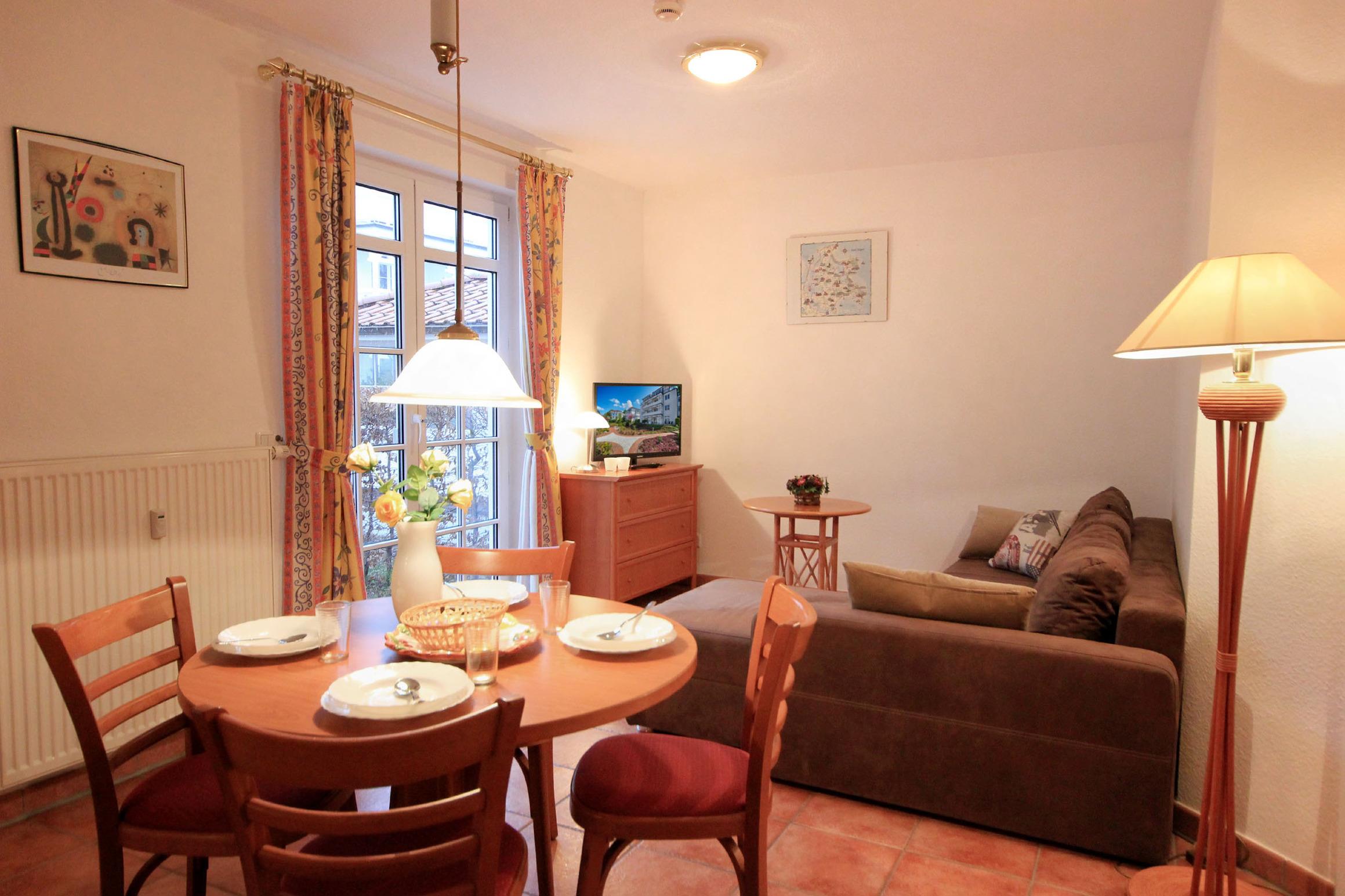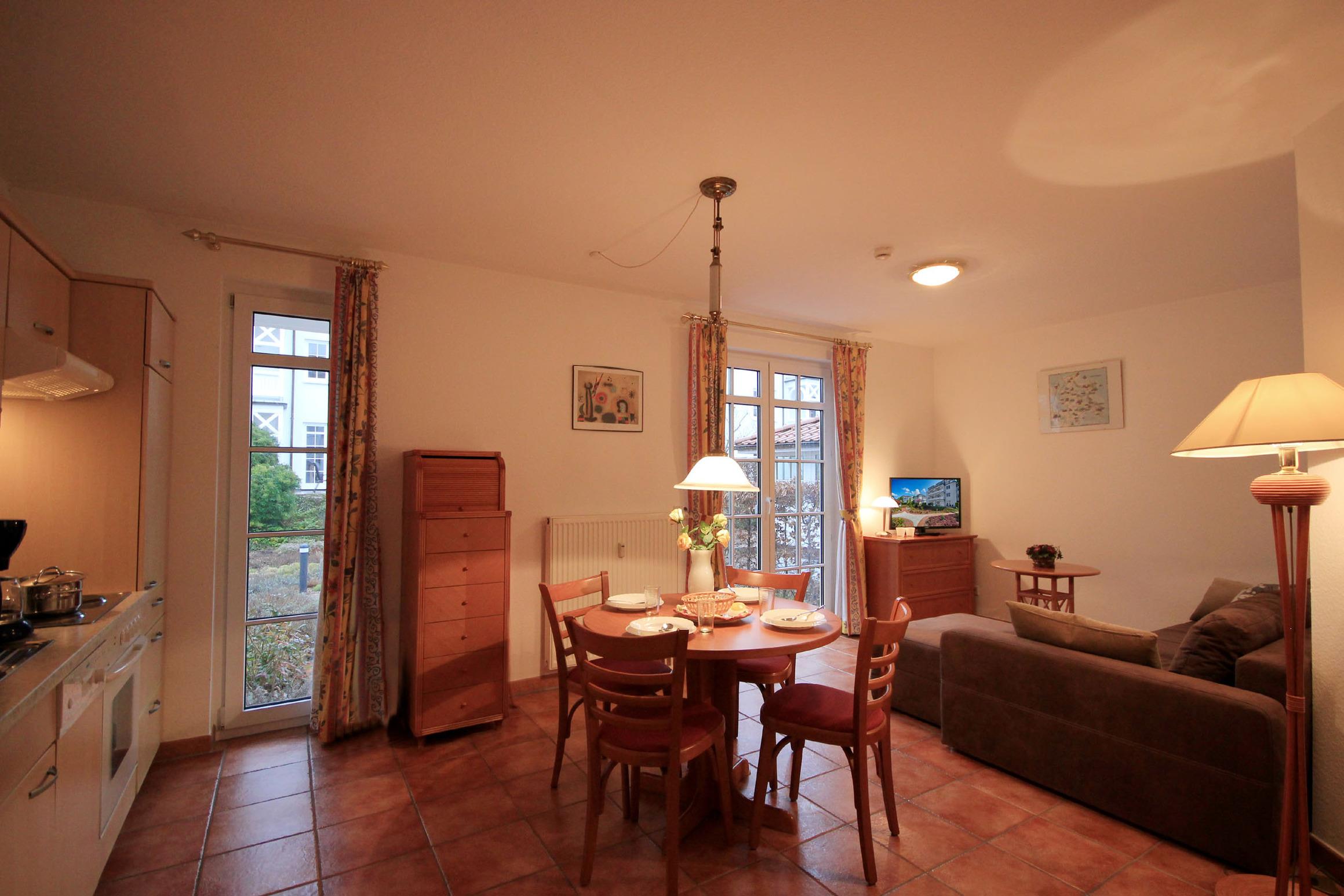 Ihre gemütliche Ferienwohnung 9RB2 mit eigener Terrasse befindet sich im Erdgeschoss der Villa Dornbusch. Die 2 Zimmer - Wohnung hat eine Größe von ca. 44 qm und ist mit bis zu 4 Personen belegbar.