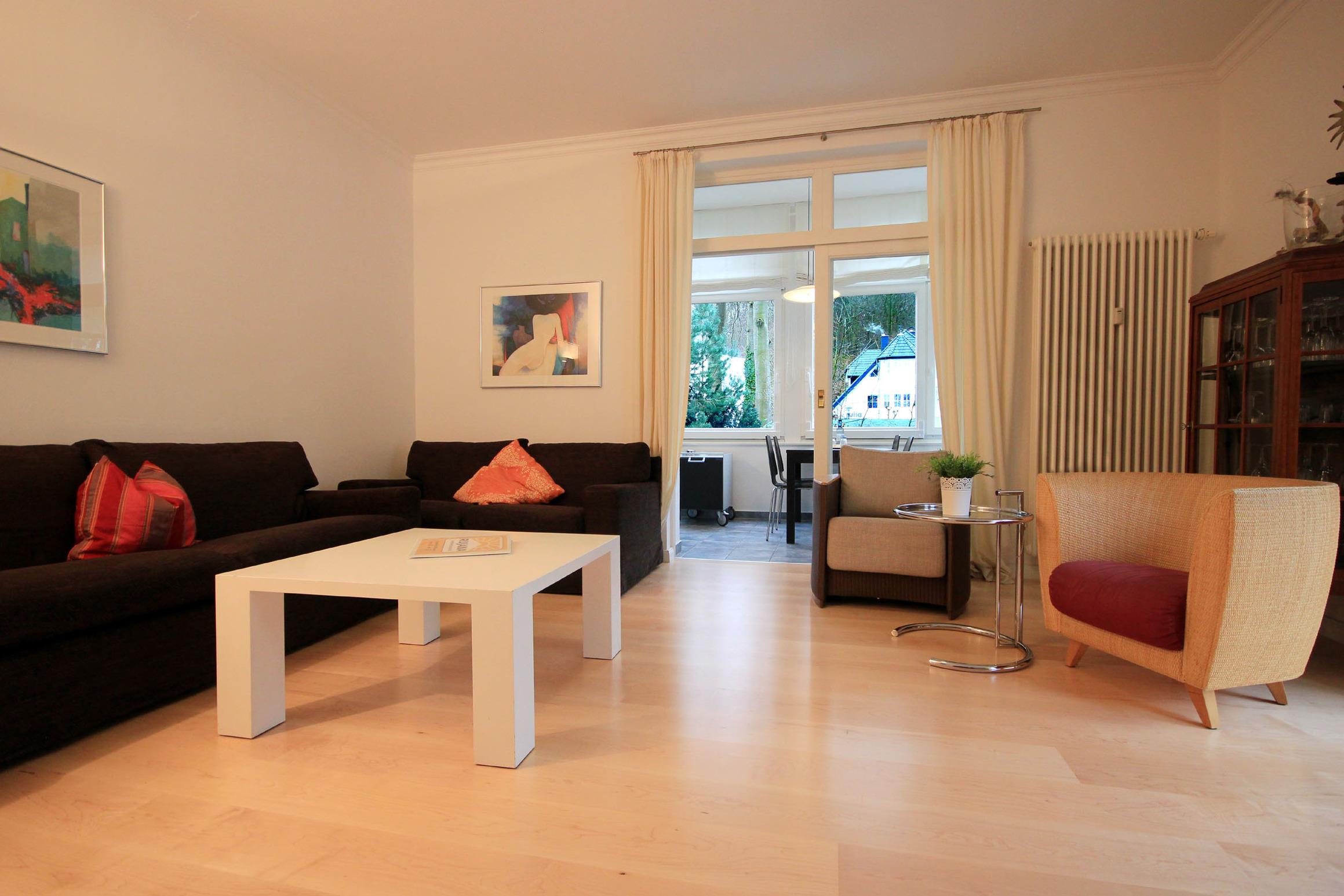 Im gemütlichen Wohnraum finden Sie ausgewählte Sitzmöglichkeiten, Echtholzmöbel, einen Flachbildfernseher, DVD-Player, WLAN sowie eine Musikanlage.
