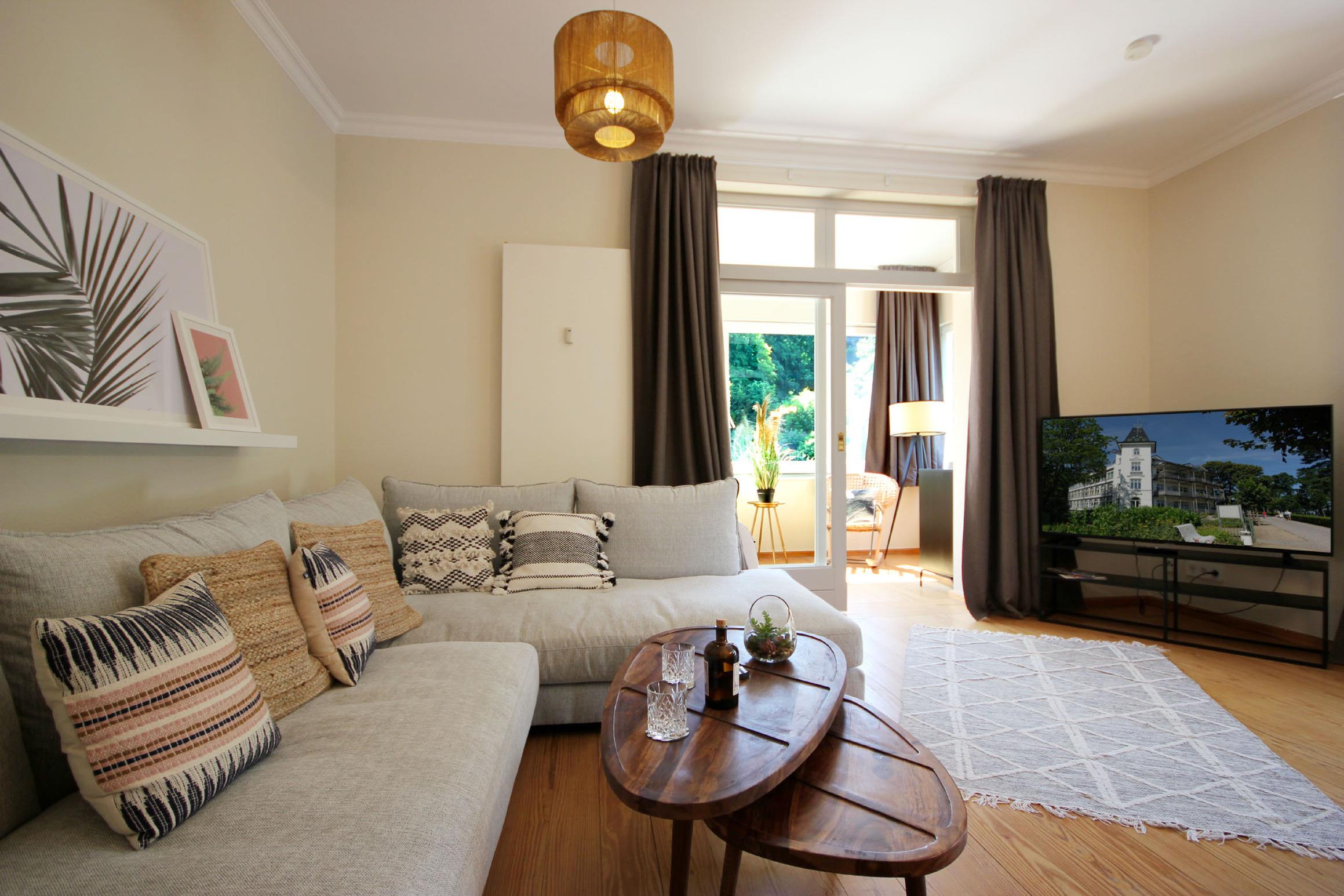 Ihre stilvoll und mit Liebe zum Details eingerichtete 4-Raumwohnung 40RB35 Florence liegt im 2. Obergeschoss der Villa. Dieses Nichtraucher-Appartement besticht durch seine harmonische Ausstattung, hervorragende Lage sowie seinen großem und möblierten Süd-Balkon. Diese attraktive Wohnung verfügt über eine Wohnfläche von ca. 95 qm. Neben dem Wohnraum gibt es 3 Schlafräume, eine separate Küche mit zusätzlichem Zugang zum Balkon und ein Tageslichtbad mit Waschtisch, Dusche und WC. Der exklusive Wohnraum mit SMART-TV und WLAN begrüßt Sie neben dem gemütlichen Sofa mit einem separaten Essplatz, welcher ausreichend Platz für bis zu 6 Personen bietet. Im Hauptschlafzimmer befindet sich ein gemütliches Doppelbett sowie ein großzügiger Kleiderschrank. Der 2. Schlafbereich im angrenzenden Wintergarten vom Hauptschlafraum erwartet Sie mit zwei Einzelbetten. Die 3. Schlafmöglichkeit finden Sie anliegend am Wohnbereich mit einem französischen Doppelbett. Alle Schlafbereiche verfügen über Verdunklungsstoffe für einen erholsamen Schlaf. Die Küchenzeile ist komplett mit Kühlschrank, Geschirrspüler, Backofen, Cerankochfeld, diversen Kleingeräten und ausreichend Küchengeschirr ausgestattet. Für unsere kleinen Gäste steht ein Hochstuhl sowie Kinderreisebett zur Verfügung.