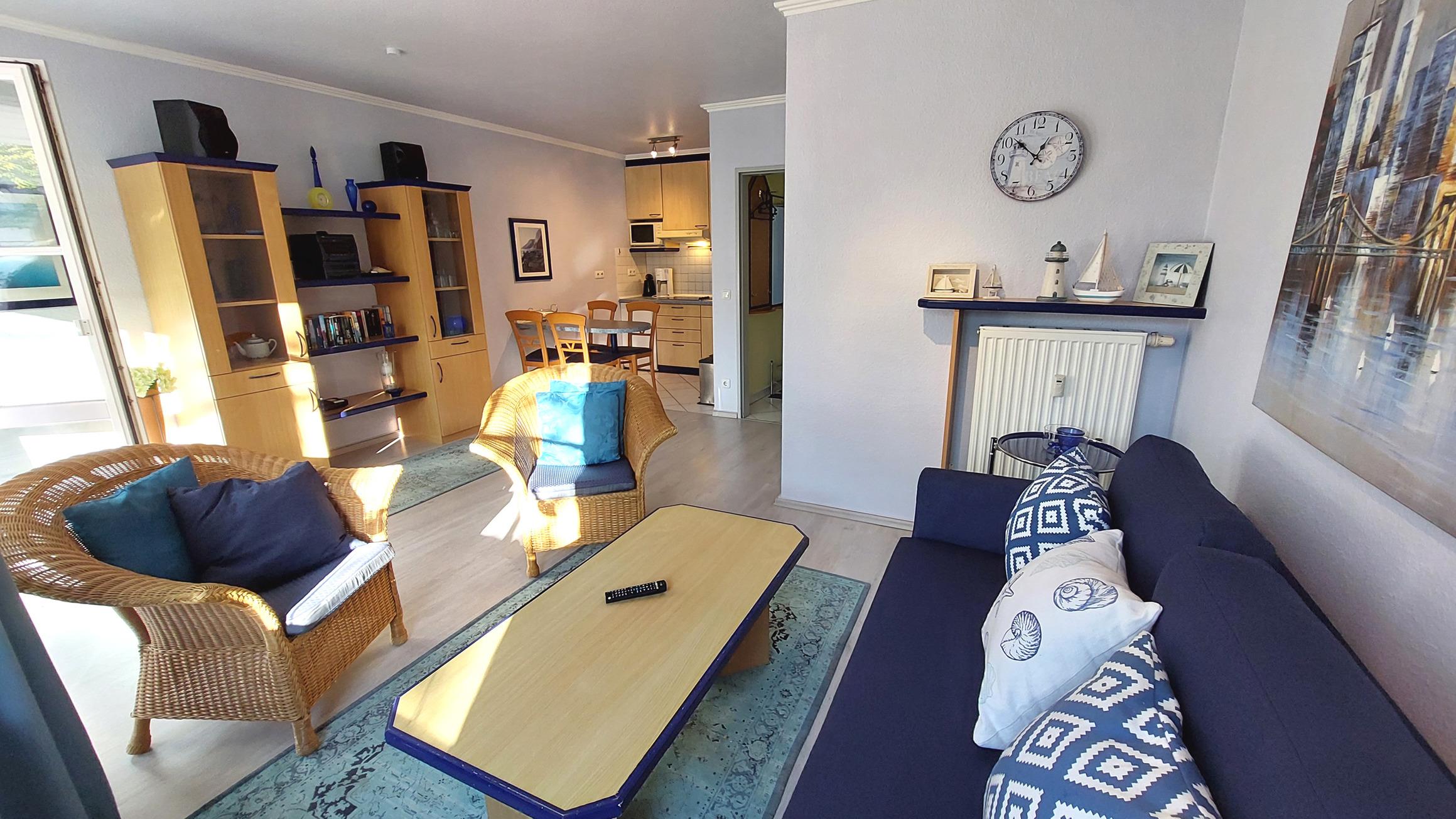 Die Wohnküche beinhaltet u.a. einen Geschirrspüler, Kochfeld, Mikrowelle, Kaffeemaschine, Wasserkocher und Toaster. Unsere Gäste können einen kostenfreien WLAN-Zugang nutzen.
