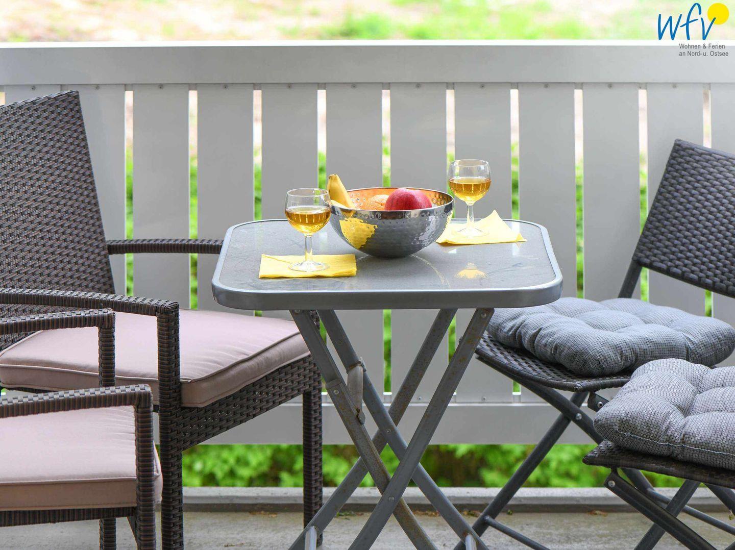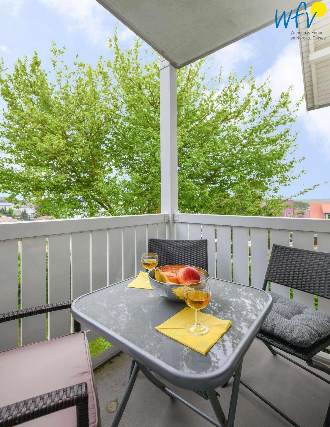 Herrliche Entspannung bietet Ihnen auch der überdachte Süd-Balkon mit Blick ins Grüne! Hier in Ruhe ein gutes Buch zu lesen, die Ostseeluft zu genießen oder gemütlich beisammen zu sitzen bringt 100% Wohlfühlfaktor! Für Ihre Kinder gibt es in der Wohnanlage einen kleinen Spielplatz.