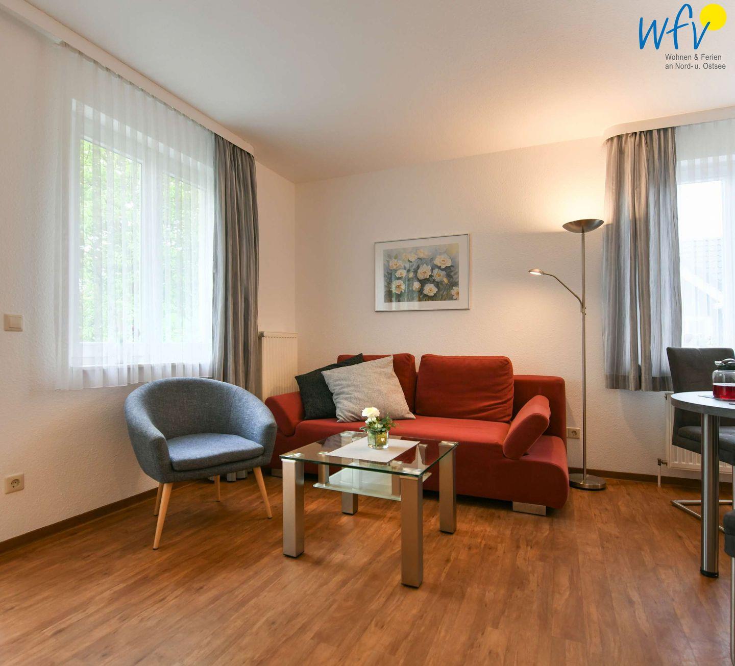 In dem hellen und offenen Wohnbereich mit Couch, Sesseln und TV können Sie entspannte Stunden verbringen. Zum Musik hören gibt es eine kleine Stereoanlage. Um in Ruhe vom Smartphone aus im Internet zu surfen, empfangen Sie freies WLAN - selbstverständlich kostenlos!
