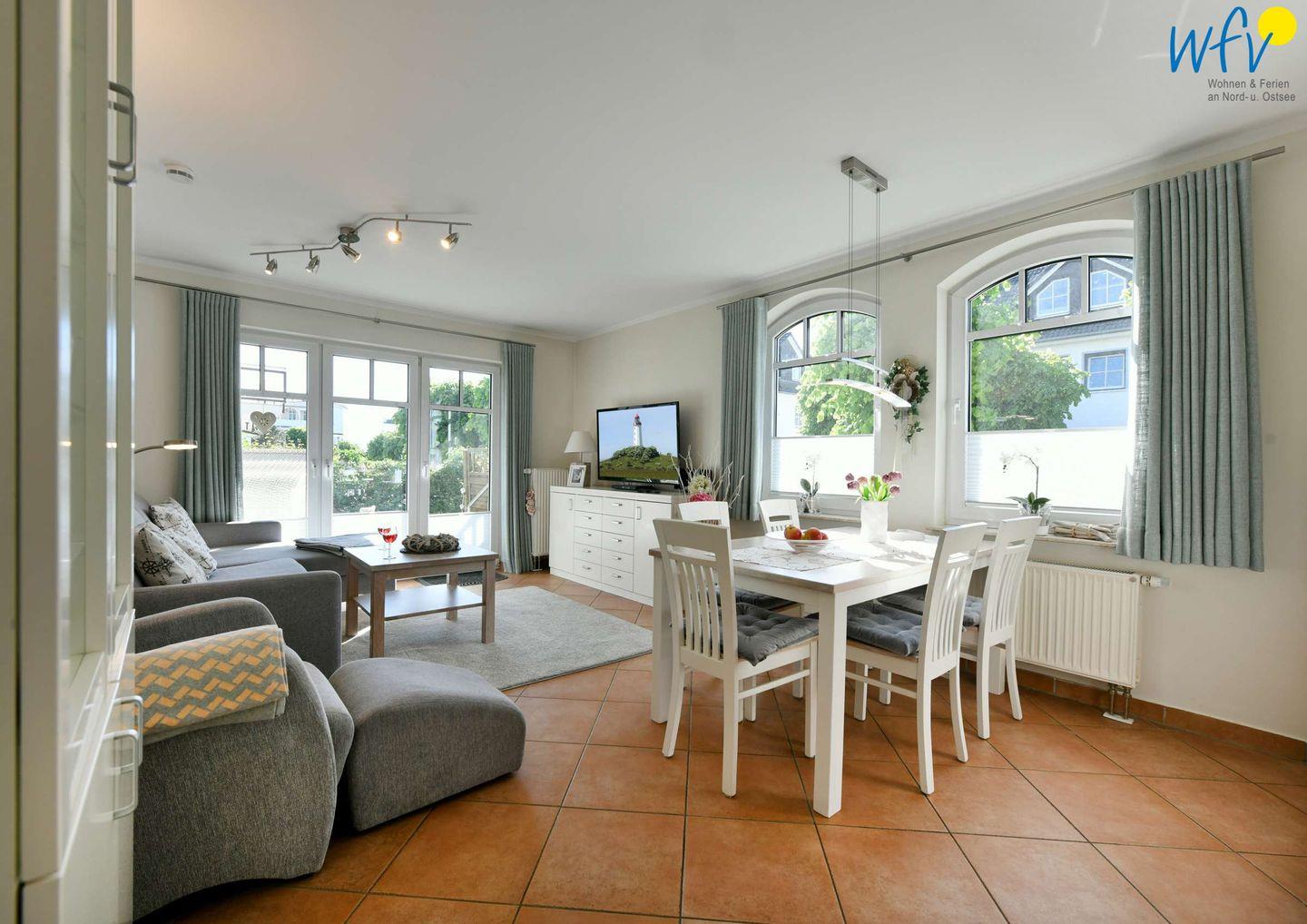 Ob nach dem Strandtag, der Fahrradtour oder der Wanderung - im Wohnraum laden ein gemütliches Sofa und ein Fernsehsessel mit Fußhocker sowie ein TV mit Blu-ray-Player zum Ausspannen ein! Zum Musik hören gibt es eine kleine Stereoanlage. Selbstverständlich empfangen Sie auch freies WLAN, um mit Ihrem Smartphone im Internet surfen zu können. Für wohlige Wärme sorgt eine Fußbodenheizung.