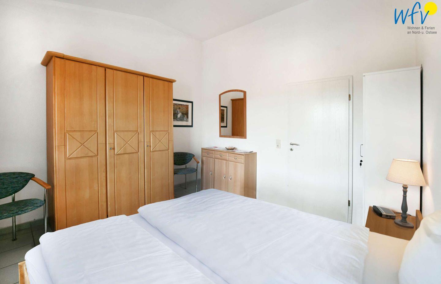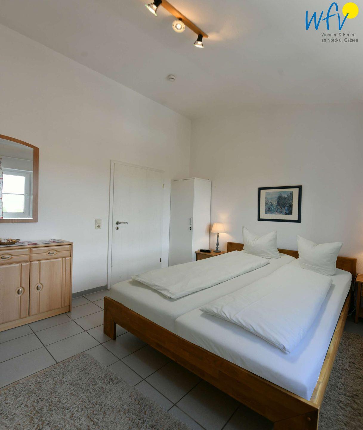 Wenn auf Rügen die Sonne untergeht, wartet in dem separaten Schlafzimmer ein bequemes Doppelbett auf Sie (180 x 200 cm). Für die Urlaubsgarderobe ist ein geräumiger Kleiderschrank vorhanden. Die komfortable Schlafcouch im Wohnzimmer bietet zwei weiteren Personen eine angenehme Nachtruhe.