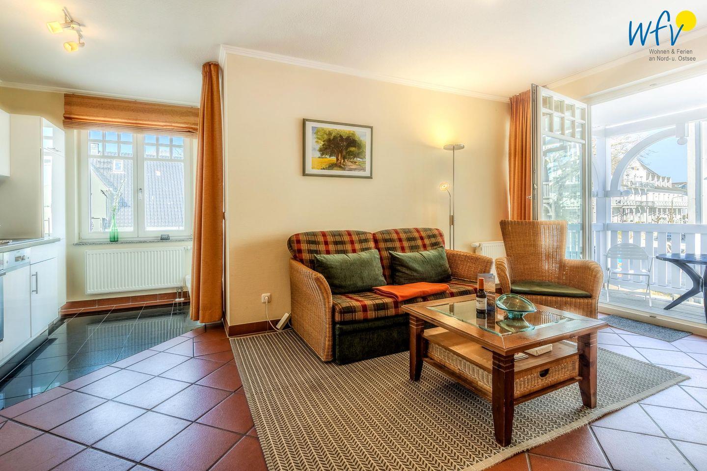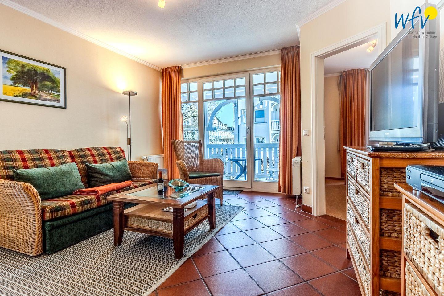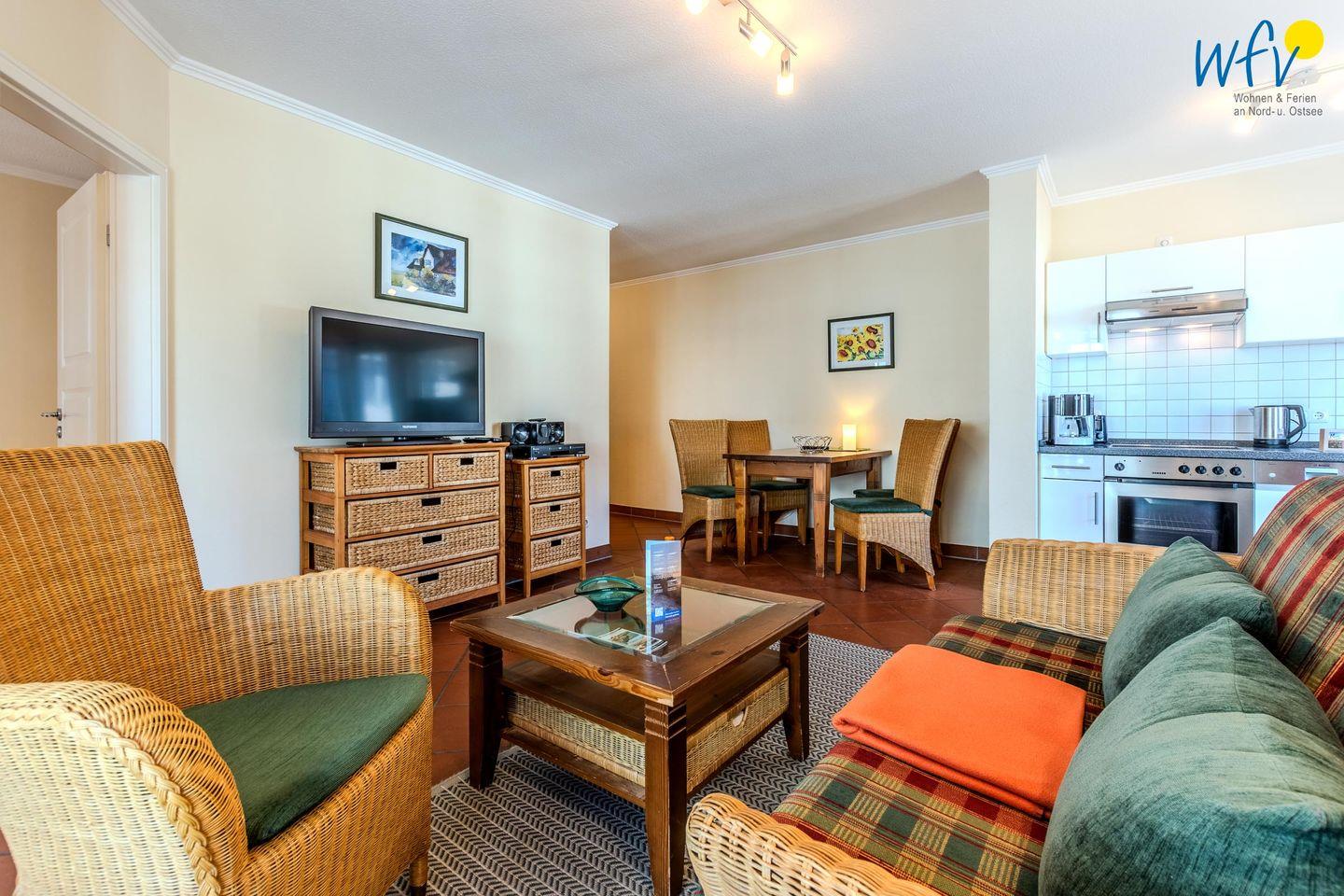 Eine gemütliche Einrichtung mit Rattanmöbeln sowie ein schöner Lichteinfall lassen direkt ein Gefühl der Erholung aufkommen! In der Couchecke mit modernem TV, DVD-Player und kleiner HiFi-Anlage können Sie nach dem Ausflugstag ausgiebig entspannen. Oder Sie genießen auf einem der beiden überdachten Balkone die wohltuende Ostseeluft. Das ist ein wunderbares Urlaubsgefühl!