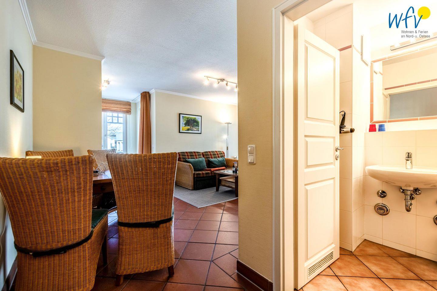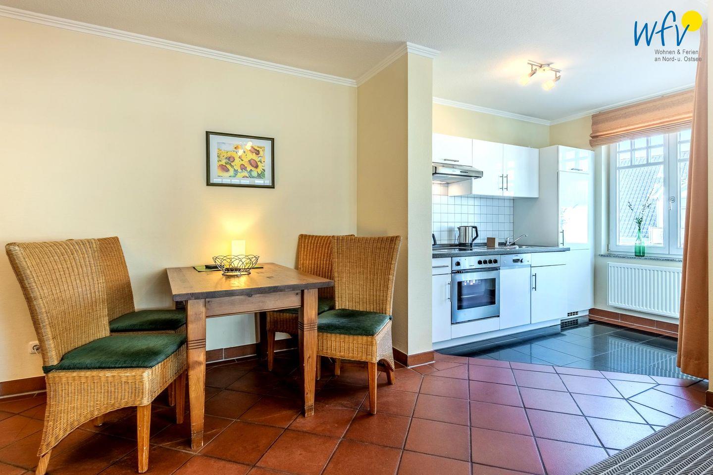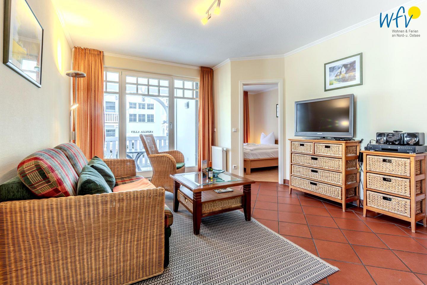 Eine gemütliche Einrichtung mit Rattanmöbeln sowie ein schöner Lichteinfall lassen direkt ein Gefühl der Erholung aufkommen! In der Couchecke mit modernem TV, DVD-Player und kleiner HiFi-Anlage können Sie nach dem Ausflugstag ausgiebig entspannen. Oder Sie genießen auf einem der beiden überdachten Balkone die wohltuende Ostseeluft. Das ist ein wunderbares Urlaubsgefühl!