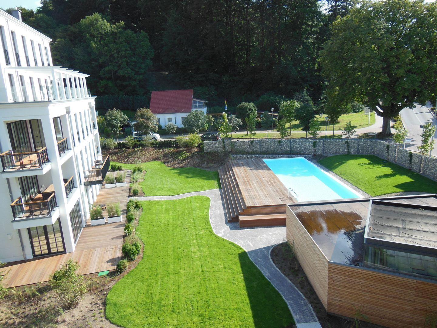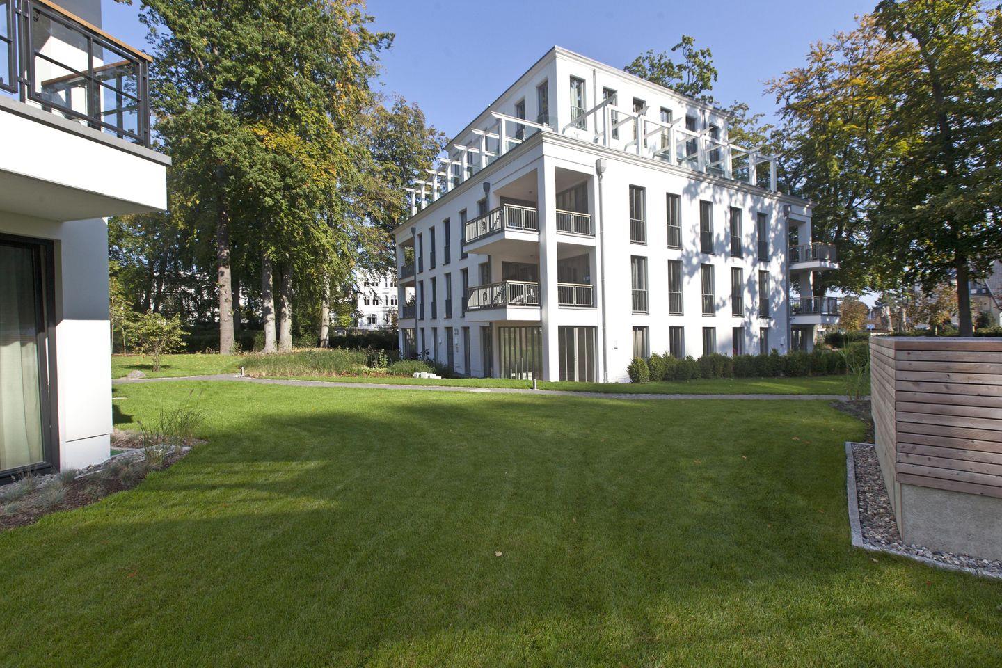 Die Wellness-Ferienwohnung "Meine Auszeit" befindet sich in den neu gebauten Binzer Parkvillen inmitten einer 6000 m² großen Parkanlage nah am Zentrum und der Seebrücke. Die elegante und anmutige Architektur sorgt für reine Urlaubsvorfreude. Der saisonal nutzbare Außenpool ist für unsere Gäste das ganz besondere Highlight während des Sommerurlaubs.