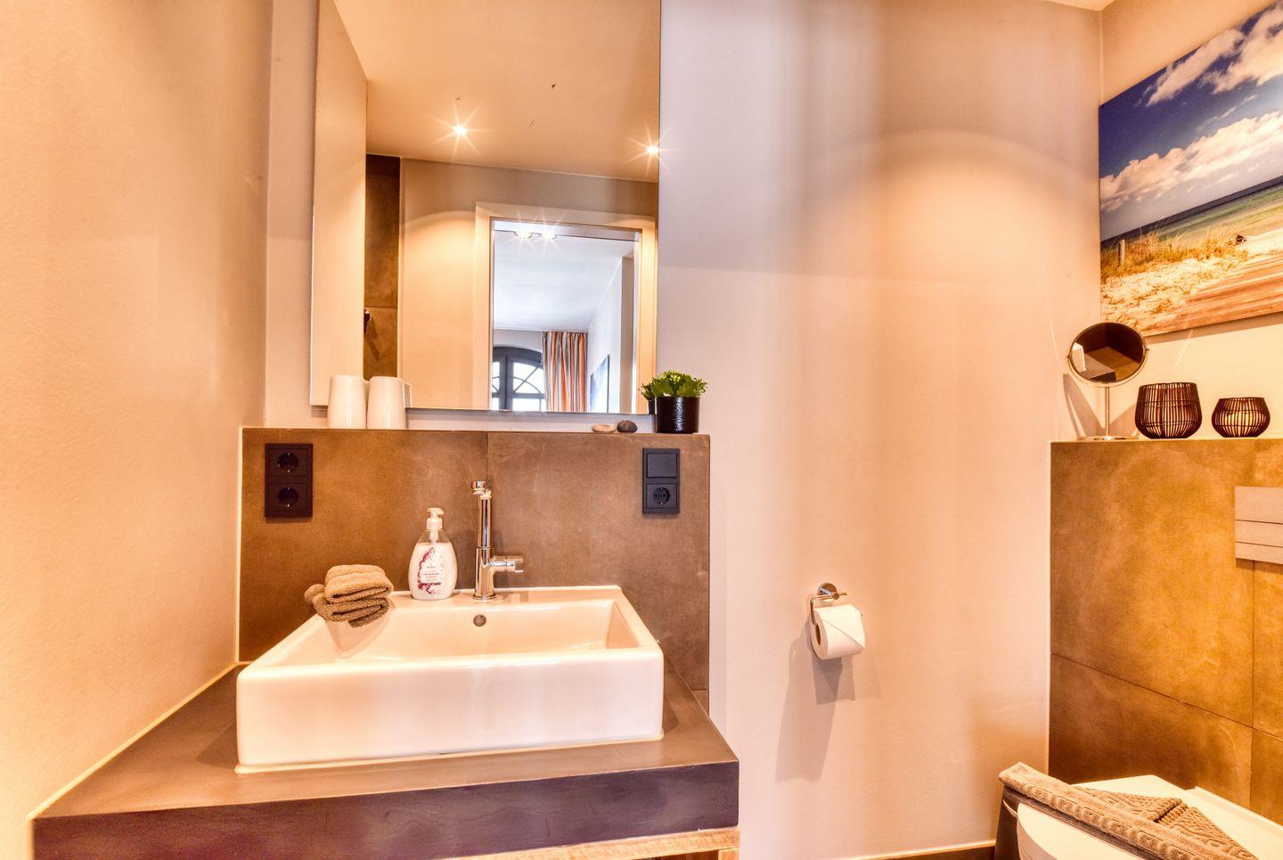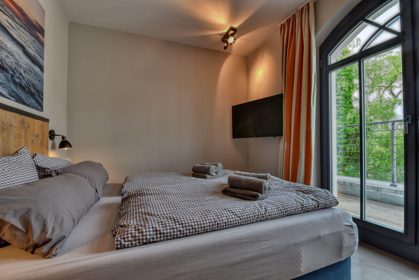 An den Wohnbereich schließt sich die offene und komplett ausgestattete Küchenzeile mit Essbereich an. Von hier kann man den nach Südwesten ausgerichteten Balkon, ausgestattet mit Balkonmöbeln, betreten. Ein Schlafzimmer mit bequemen Boxspringbett und ein Badezimmer mit ebenerdiger Regendusche ergänzen das richtige Urlaubsambiente. Ein PKW-Stellplatz in der hauseigenen Tiefgarage und kostenfreies WLAN stehen Ihnen während des Urlaubs zur Verfügung.