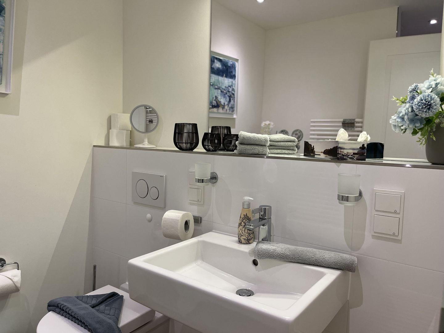 Im Haus gibt es eine finnische Holzsauna (Gemeinschaftsnutzung - Münzgerät), eine Waschmaschine und einen Trockner (Münzgeräte) zur gemeinschaftlichen Nutzung. Bei der Anreise sind die Betten bereits bezogen und Handtücher und Badetücher liegen bereit. Ein eigener Stellplatz in der Tiefgarage ist für Sie reserviert.