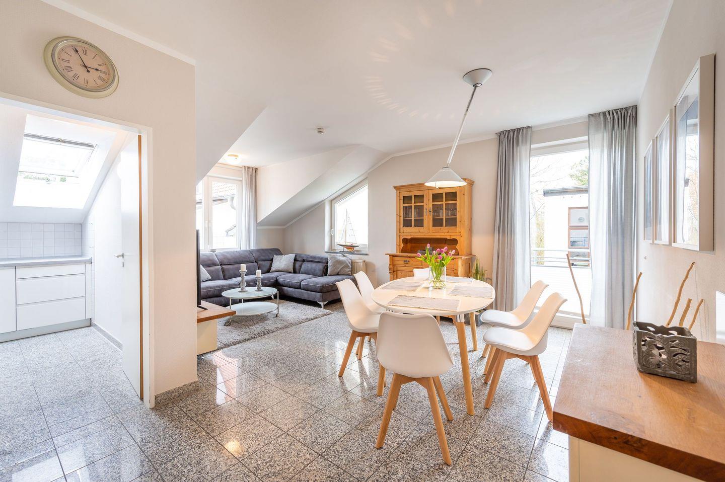 Viel Platz und Möglichkeiten - das Appartement verfügt über 2 Schlafzimmer, einem Duschbad, ein geräumiges Wohnzimmer mit Zugang zum ruhig gelegenen Balkon und natürlich Smart-TV, dem Essbereich, sowie eine separate, vollständig eingerichtete, hochwertige Nolte Küche.