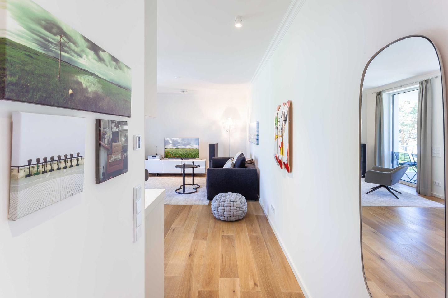 Das exklusive und 80qm großzügige 3-Raum-Appartement "Greta´s Beach Home" im 2.OG besticht durch detailliertes und exklusives Design, einer eigenen Sauna und natürlich auch den wunderbaren Blick auf die Ostsee.