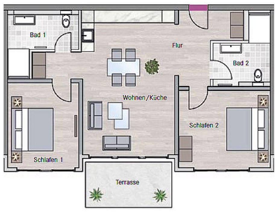 85 m² exklusive Wohnfläche mit Südterrasse