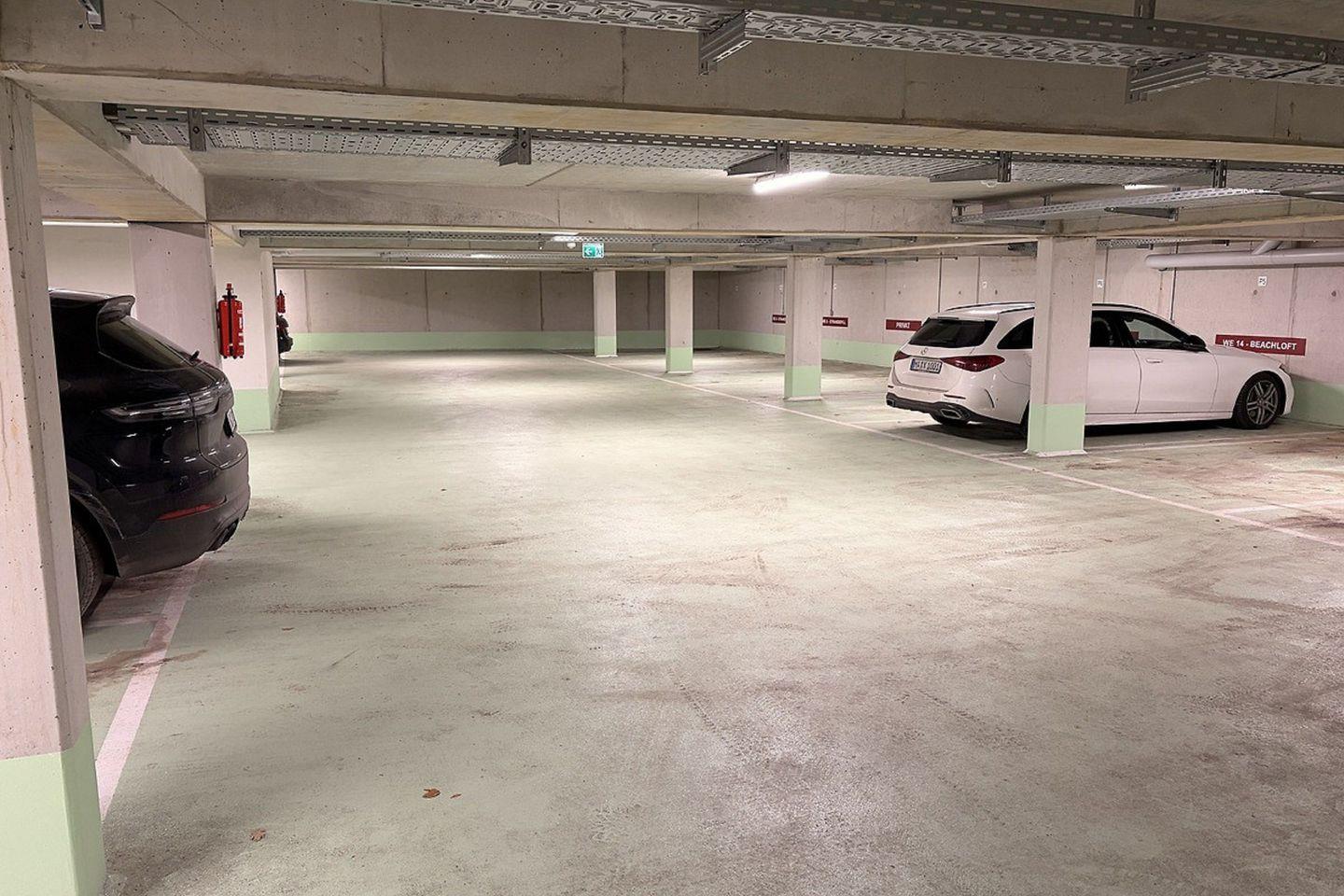 Tiefgaragenstellplatz (max. 2 m Höhe) mit bequemem Zugang per Autolift und Fahrstuhl direkt zur Wohnung