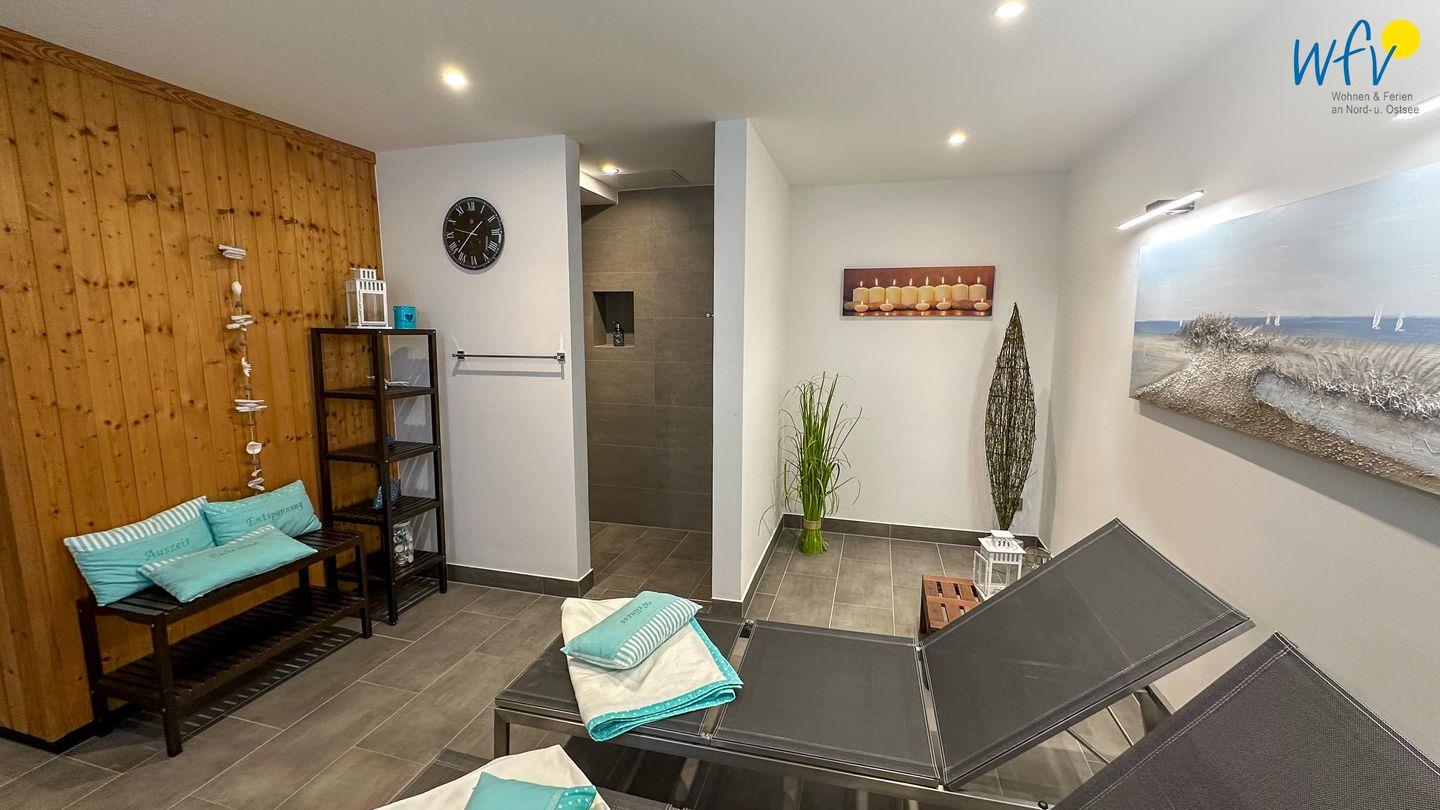 Zur Entspannung und Erholung trägt die hauseigene Sauna bei und macht die Wohnung auch an kühleren Tagen zu einem angenehmen Rückzugsort. Sie ist für alle Gäste des Hauses frei zugänglich (kostenlos).