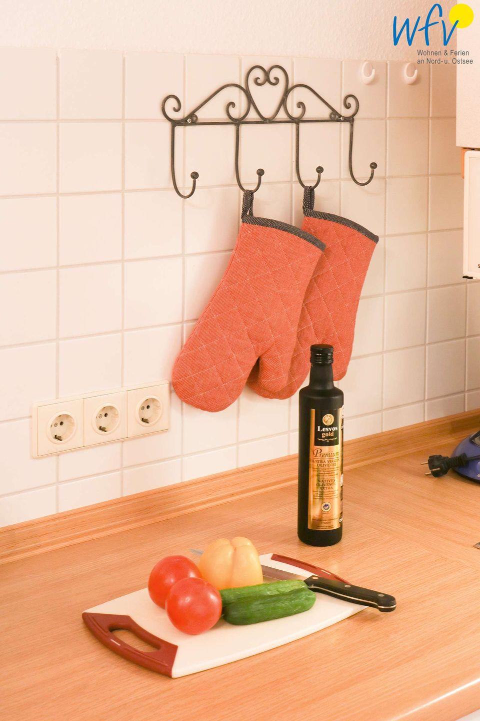 In der offenen, komplett eingerichteten Küche stehen Ihnen u.a. ein Kühlschrank mit Gefrierfach, ein Herd mit Ceranfeld und Heißluft-Backofen, eine Mikrowelle und eine Spülmaschine zur Verfügung. Kaffeemaschine, Wasserkocher, Toaster und Eierkocher sorgen für das gelungene Frühstück, sodass Sie sich in Ihrem Urlaub bequem selbst verpflegen können. Die Küche ist durch eine Frühstücksbar mit dem freundlich eingerichteten Essbereich verbunden. An dem großen Esstisch runden gemeinsame Mahlzeiten und Spielabende den Urlaubstag ab.