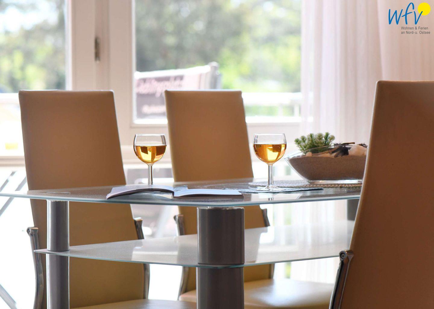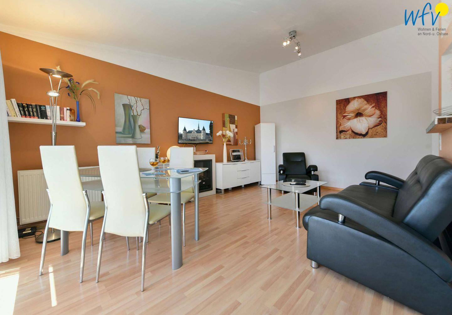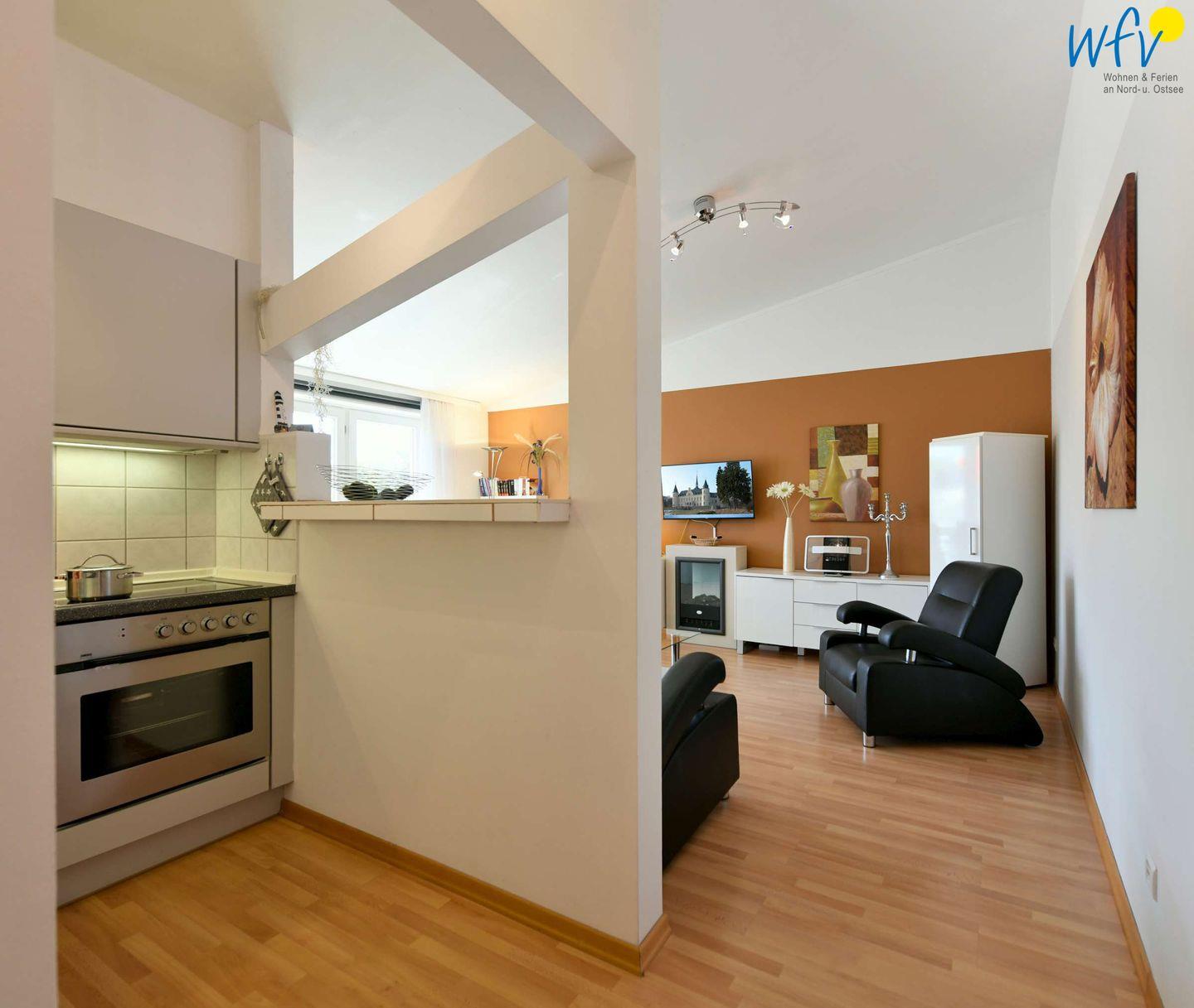 Die Ferienwohnung in Binz verfügt über einen stilvoll eingerichteten Wohnraum, ein separates Schlafzimmer mit Doppelbett sowie über eine gut ausgestattete Küchenzeile (u.a. mit Ceranfeld, Backofen, Geschirrspülmaschine, Kühlschrank mit 3***-Tiefkühlfach, Mikrowelle, Kaffeemaschine, Toaster und Wasserkocher).