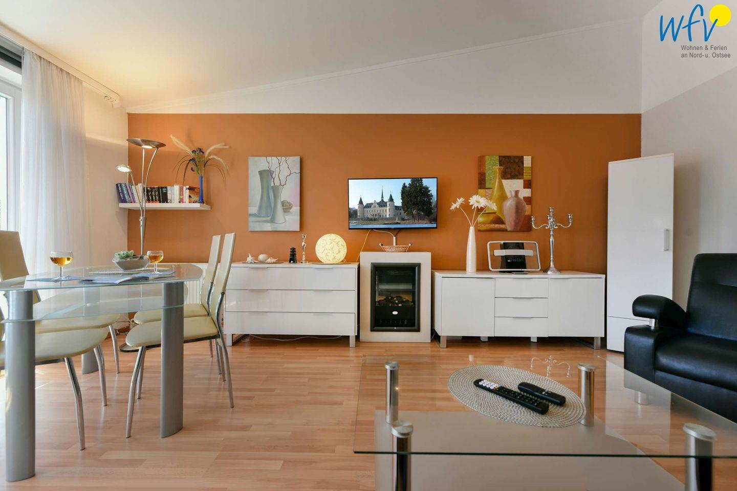 Eine moderne technische Ausstattung mit TV, Stereoanlage, DVD-Player und kostenlosem WLAN sowie ein Elektrokamin für gemütliche Abende bieten Ihnen hohen Wohnkomfort zum Wohlfühlen.