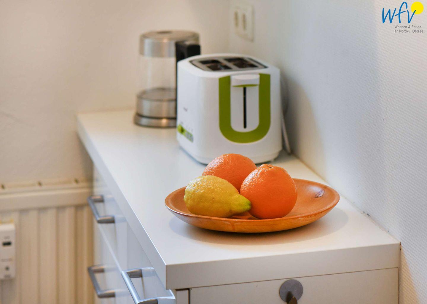 Freuen Sie sich auf gemeinsame Kochabende in Ihrem Urlaub auf Rügen? Für eine bequeme Selbstverpflegung verfügt die Ferienwohnung über eine separate, komplett ausgestattete Küche (u.a. mit Herd, Backofen, Mikrowelle). Oder Sie lassen sich auswärts kulinarisch verwöhnen: im idyllischen Ortskern finden Sie viele empfehlenswerte Restaurants, die eine köstliche Ostseeküche anbieten.