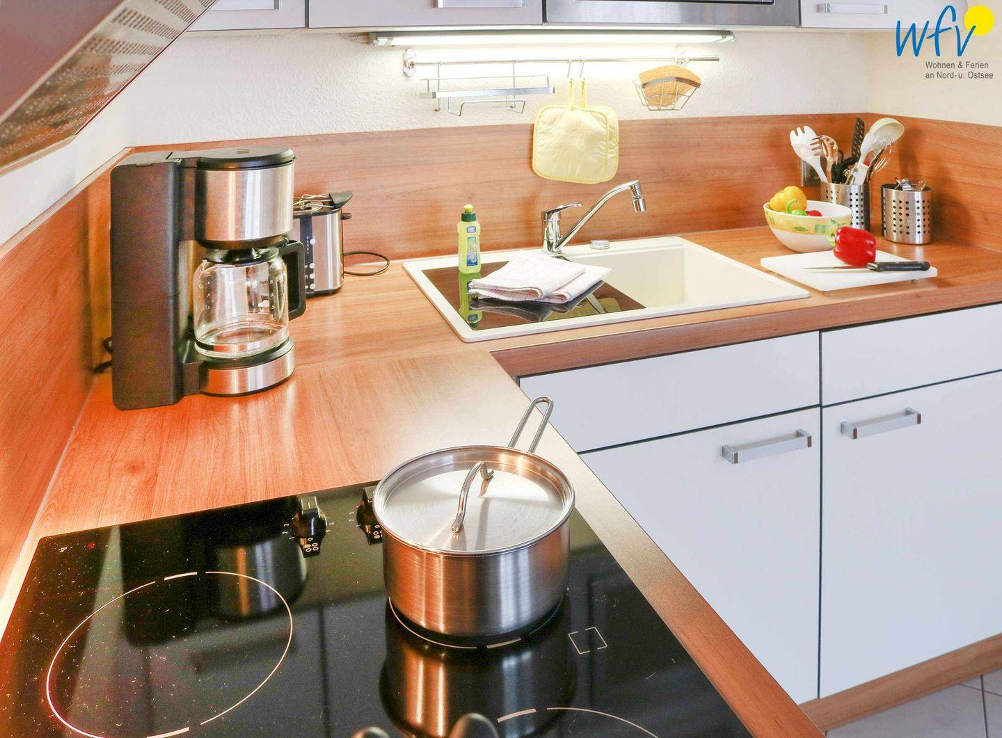 Die Selbstverpflegung wird in Ihrem Urlaub auf Rügen zum Kinderspiel. Eine moderne Einbauküche u.a. mit Geschirrspüler, Ceranfeld und Mikrowelle ermöglicht Ihnen angenehme Kochmöglichkeiten.